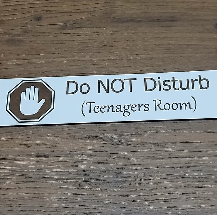 Teenager Bedroom Door Sign - Do not Disturb. White Wood Collection. With adhesive backing tape.