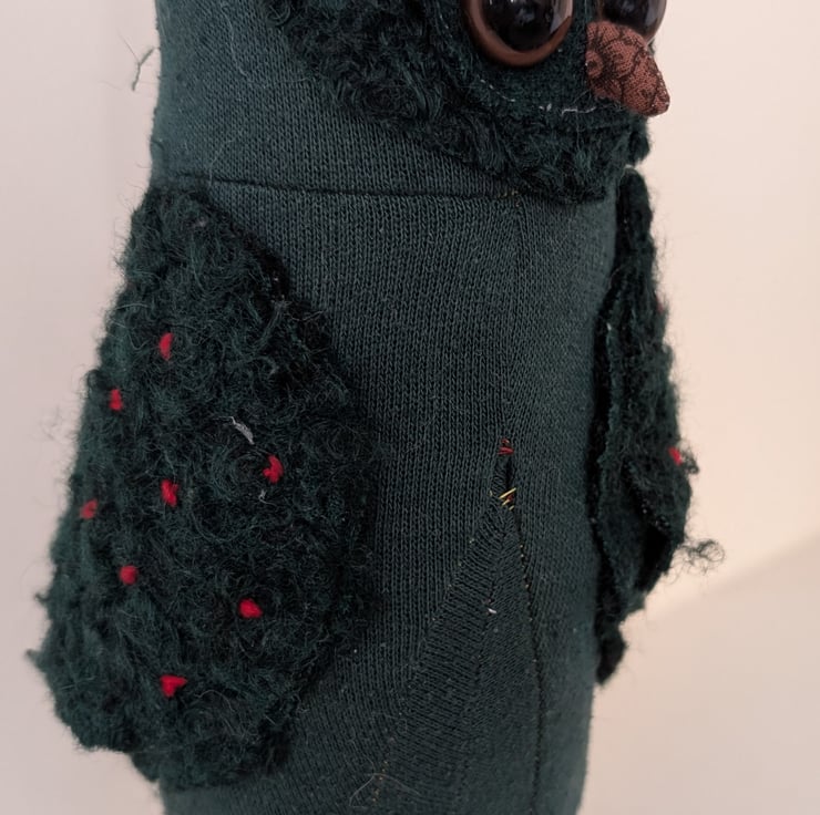 This is Taxus. He was borne from a second hand coat & an old scouts sweatshirt. I called him Taxus because his colour reminds me of the foliage of our native yew trees.