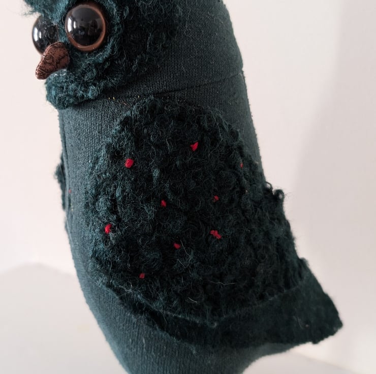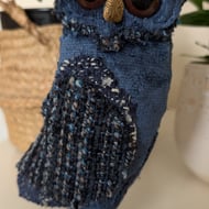 This owl inspired soft sculpture has been whimsically hand made using fabric remnants and other recycled materials. Freestanding at approx 21cm height. Please note that this is not a toy.