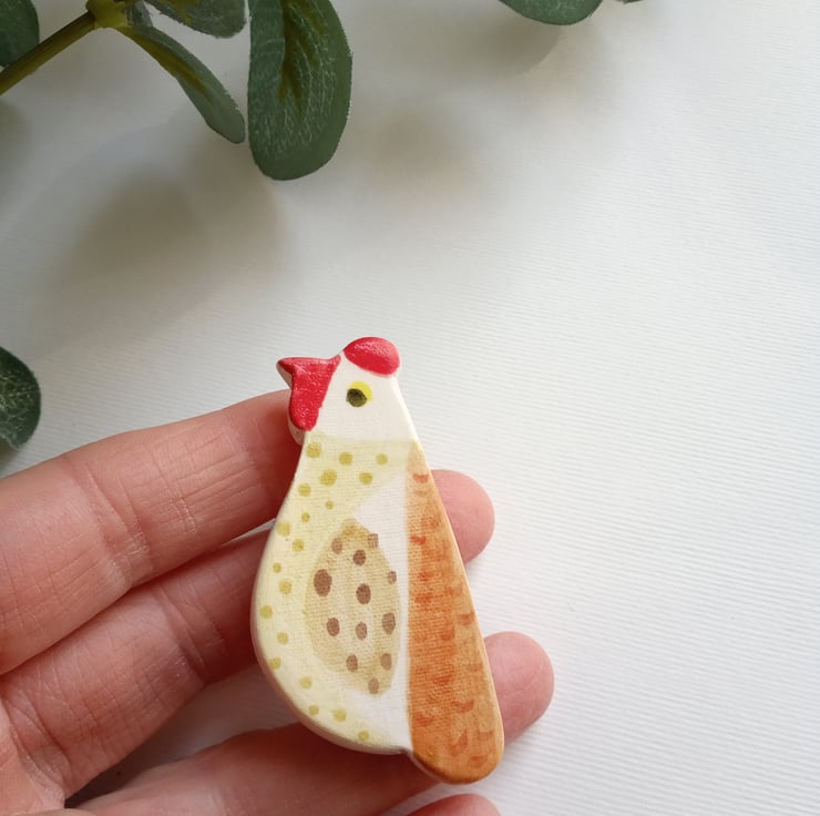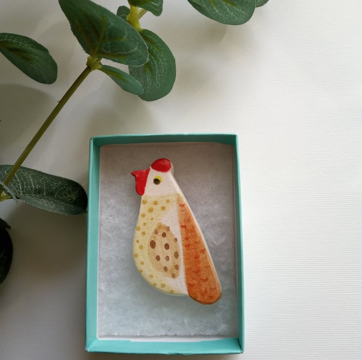 A lovely ceramic chicken brooch, it comes packaged in a jewellery box for safe keeping and posting. It makes a lovely gift for any bird lovers out there.