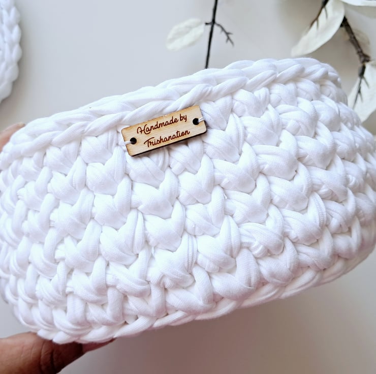 Handmade using a crochet technique with recycled fabric yarn, these are sold as advertised, or made to order in the colour and size of your choice.