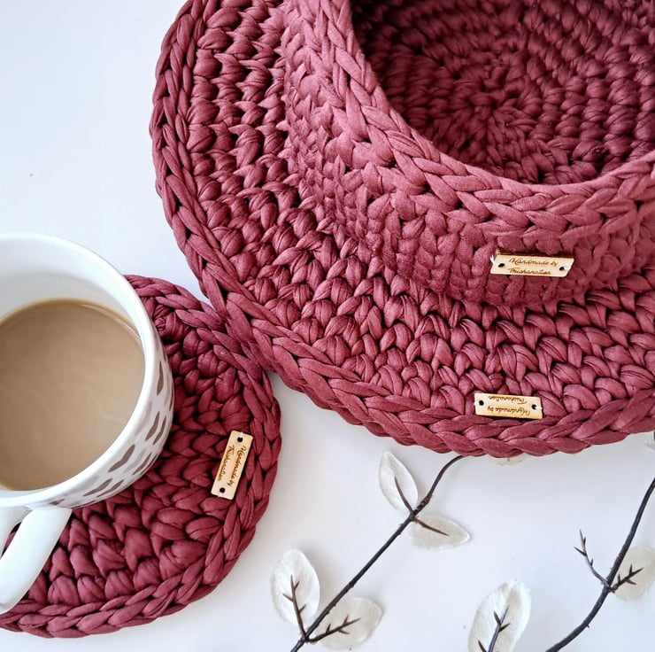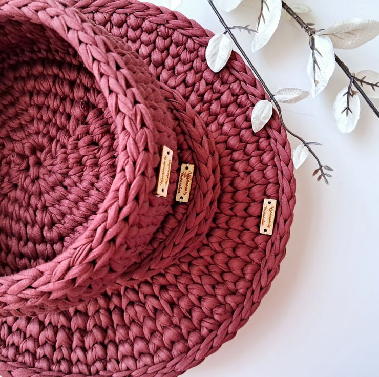 I work mainly with t-shirt yarn, twisted or braided macramé cotton cord, and occasionally with polyester cord. I love learning new techniques and experimenting new designs so items for sale are ofen unique.