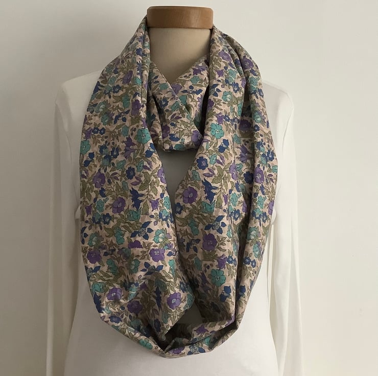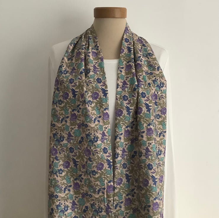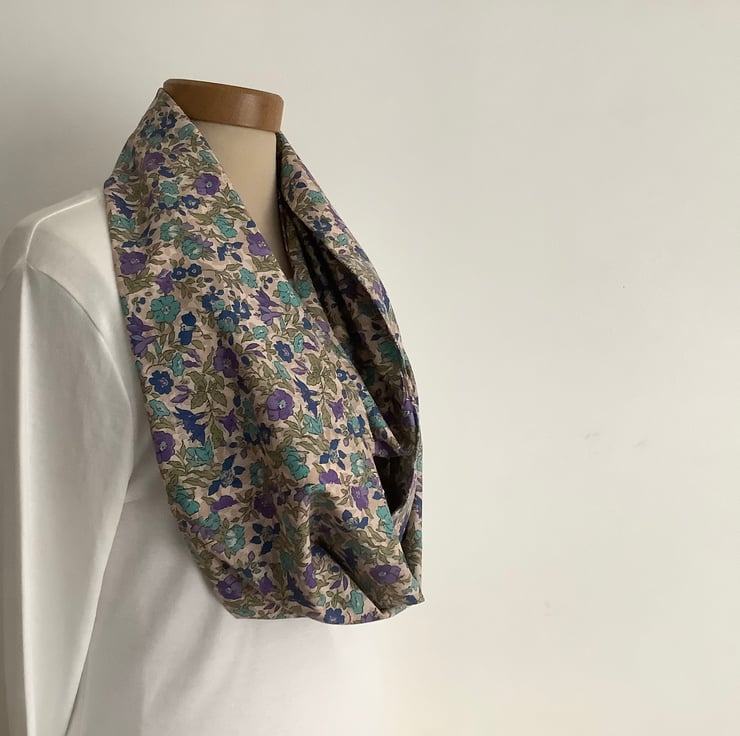 I have designed and made this lovely , lightweight infinity / tube -like scarf / skinny scarf with those in-betweeny months in mind ! I've used a deliciously soft ,cotton lawn fabric, with enough drape to adjust / loop twice .This accessory will take you through pretty much every season ! .
