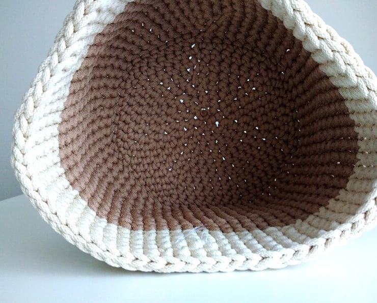I work mainly with t-shirt yarn, twisted or braided macramé cotton cord, and occasionally with polyester cord. I love learning new techniques and experimenting new designs so items for sale are ofen unique.