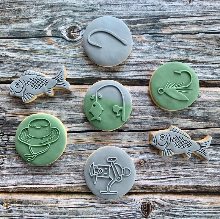 A really cute way to create fishing themed cookies using our fishing hook fondant embosser