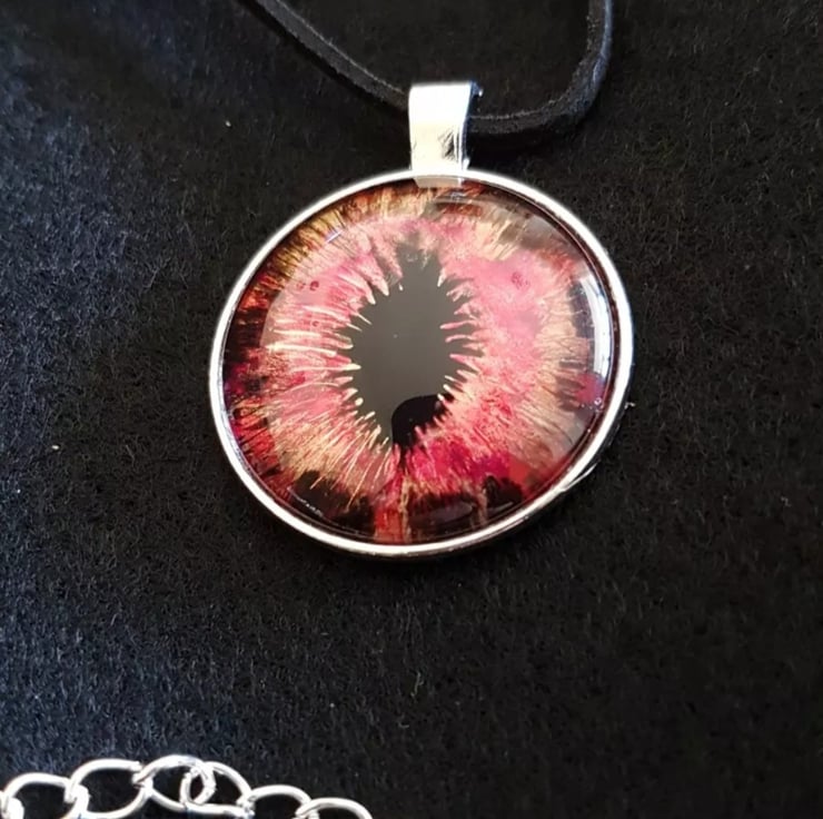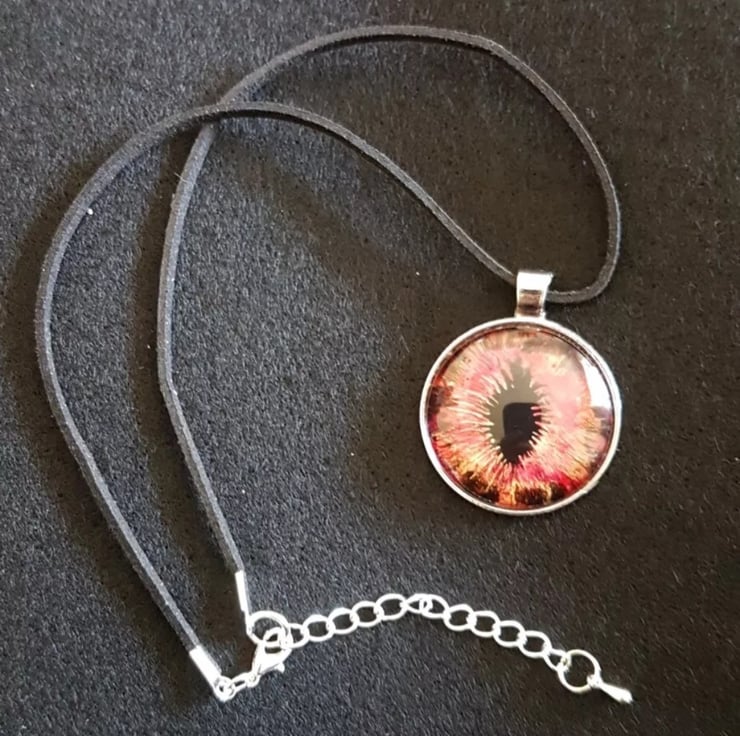Handpainted Dragons Eye Glass Cabochon Pendant Faux Suede Cord Choker.