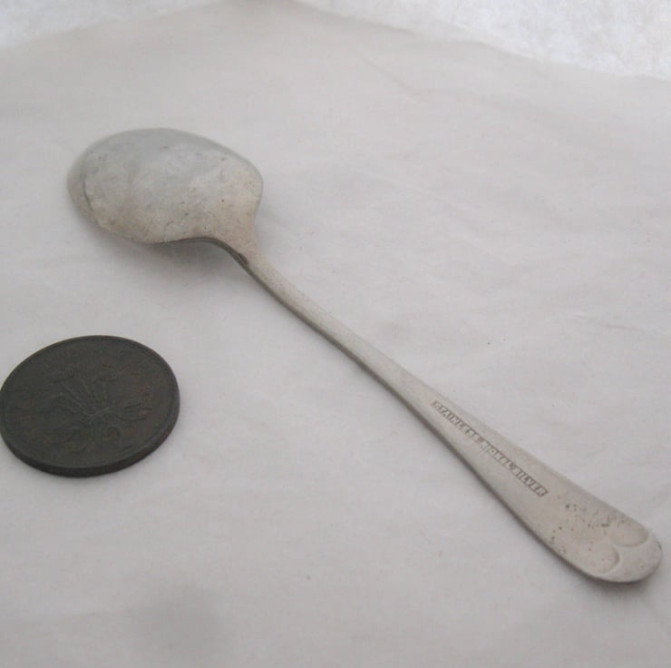 Is that about finding solace in creating meaningful change in your own community when you feel you can't do anything about all the big sh-t going down in the world? Or is it just about, erm, cultivating your garden to keep it nice? Either way you can stir your tea with it (or use it as an arty plant label) so ultimately these questions are of purely intellectual interest. It's a classic 'old english' plain teaspoon measuring approximately 13cm long.