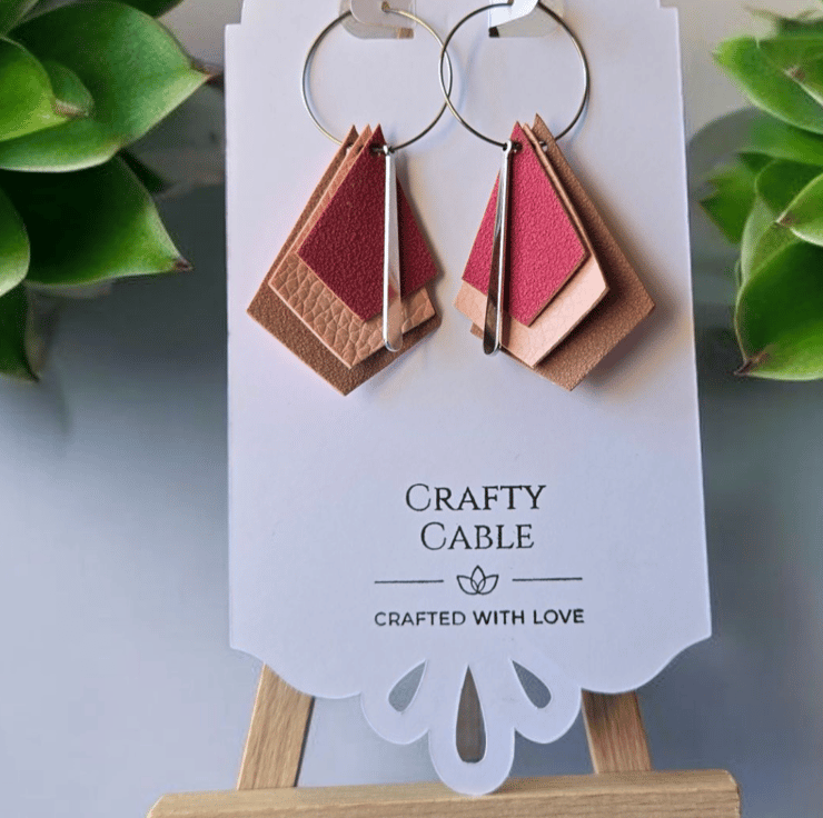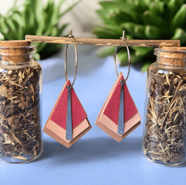 Crafted to order using high-quality faux leather and suede, each piece is backed with a complementary colour and finished with silver-plated hoops (nickel and zinc free).