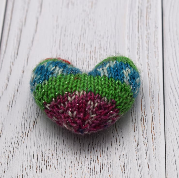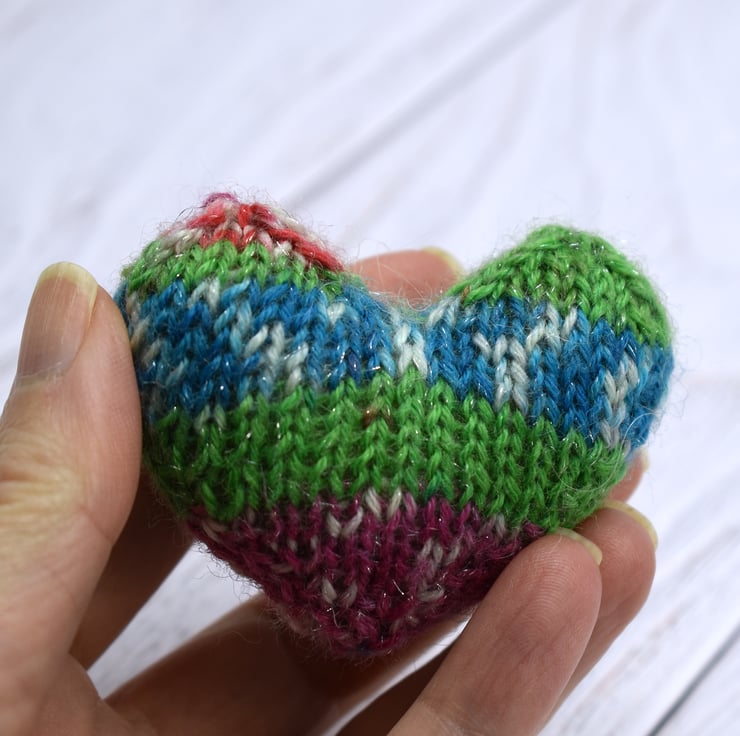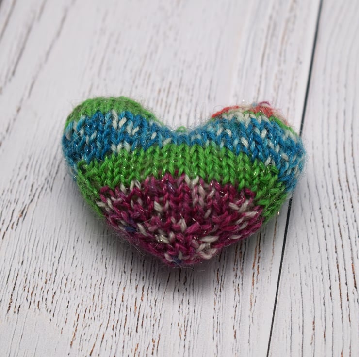 Hand knitted heart - pocket hug - Multicolour Christmas