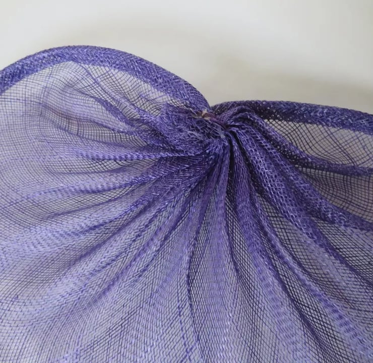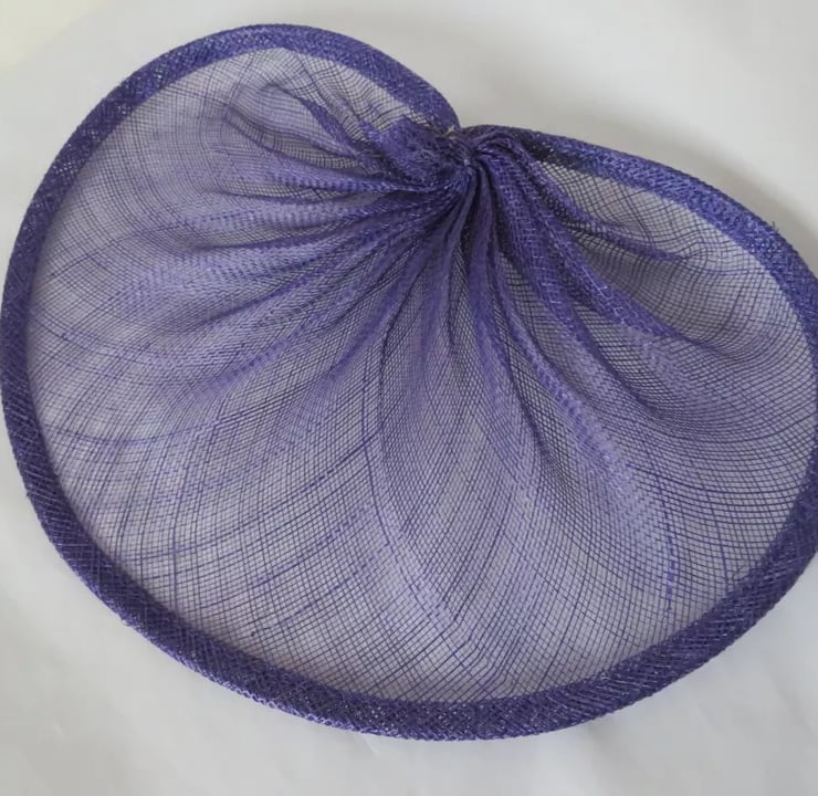 This is a lightish purple gathered fascinator hat base, it is soft and made with one layer of sinamay.