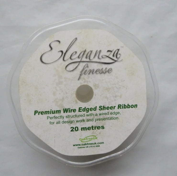 This listing is for a length of Eleganza Premium sheer organza wired edge ribbon.