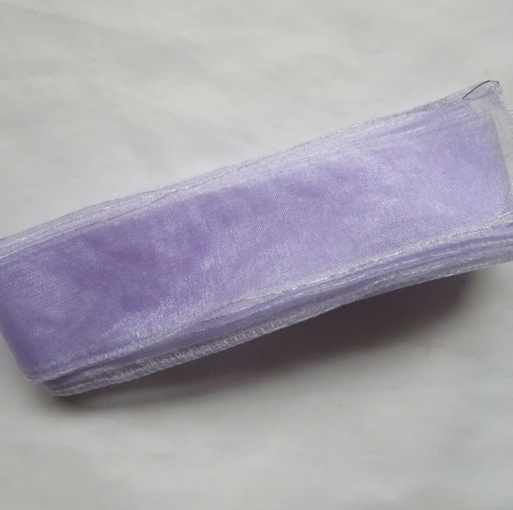 Pale Lilac Wired Edge Sheer Organza Elegant Ribbon End of Roll Crafts Wedding