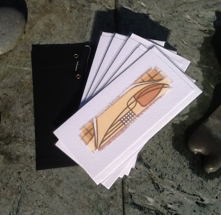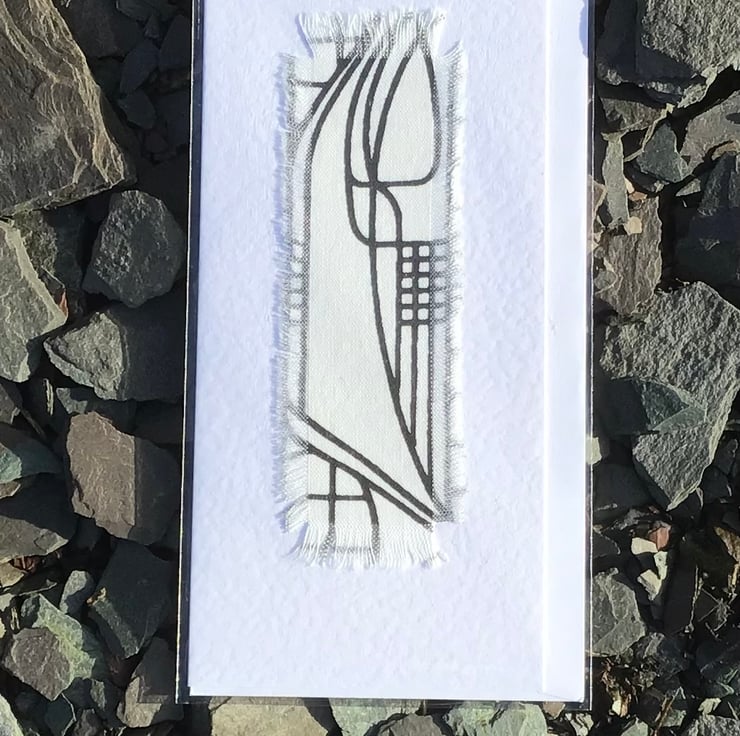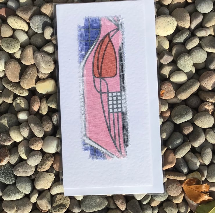 A pack of 5 hand printed blank greeting cards in a an original design of Charles Rennie Mackintosh fabric- Tulip and Lattice design. The fabric we print on is 100 per cent cotton using silk screen printing methods.
