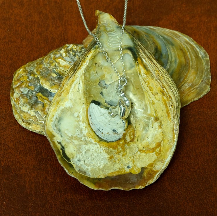 The pendant is offered on a 16" silver trace chain with a handmade clasp. Other chains are available on request.