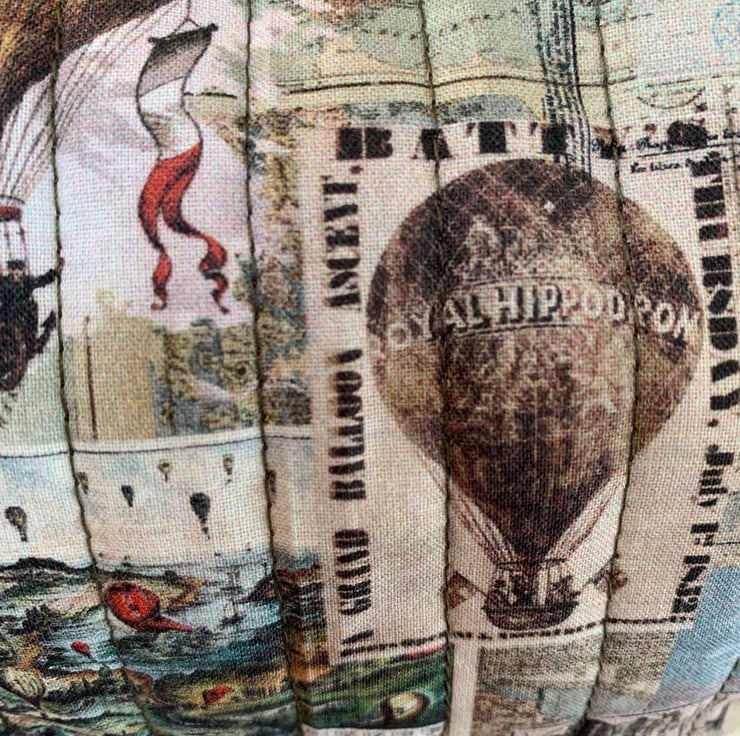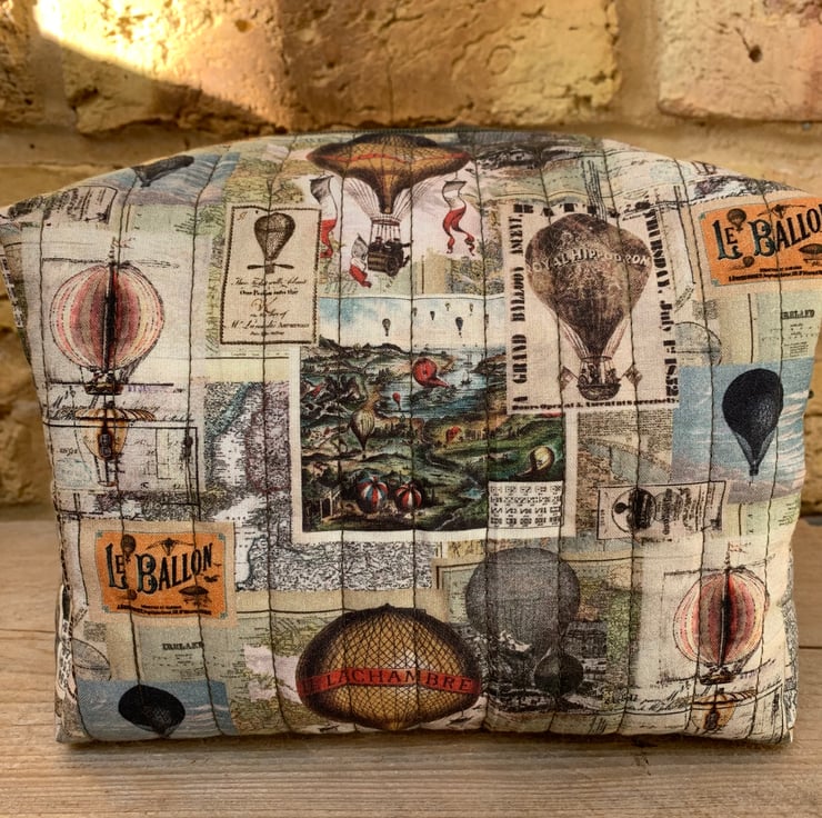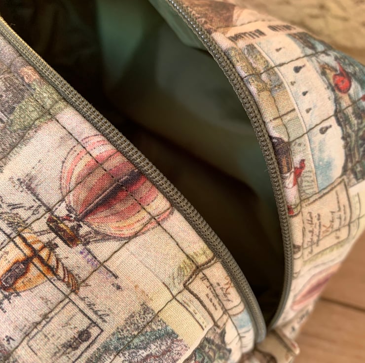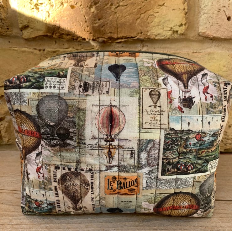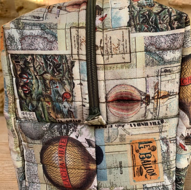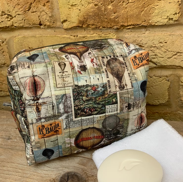 The box shape wash bag is made in this amazing Around the World in 80 Days inspired fabric.