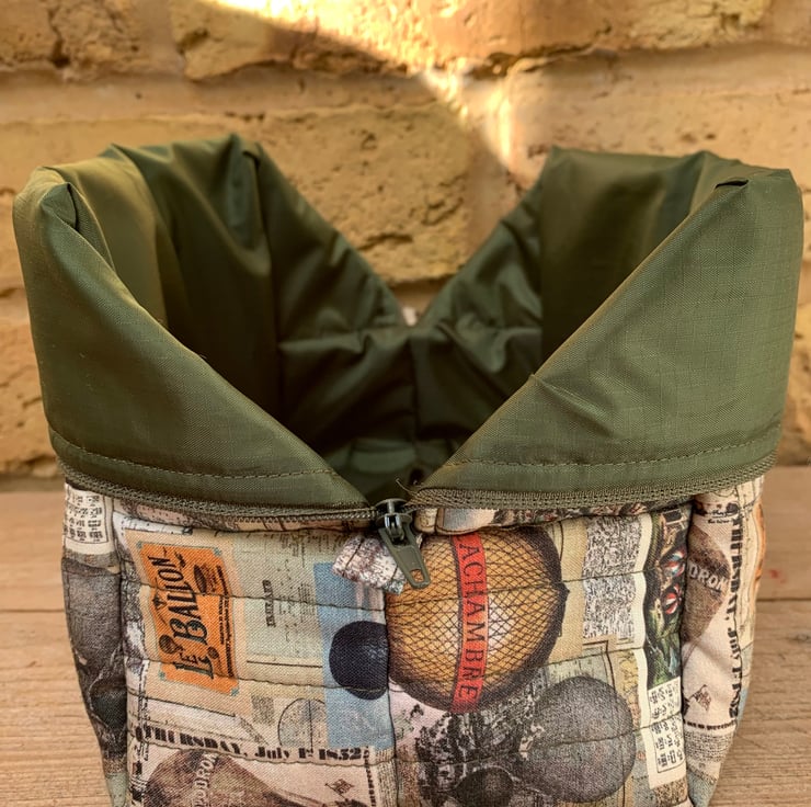 The box shape washbag was created as an alternative to straight sided bags I had made previously. It took a while to perfect the method of the fully enclosed lining - but it was worth the time and effort to achieve such a lovely neat finish.