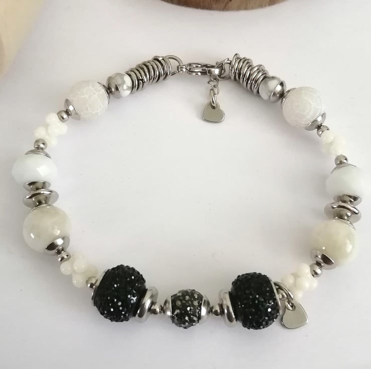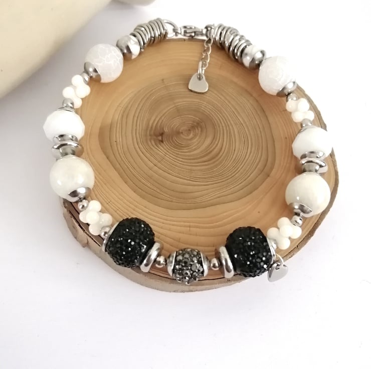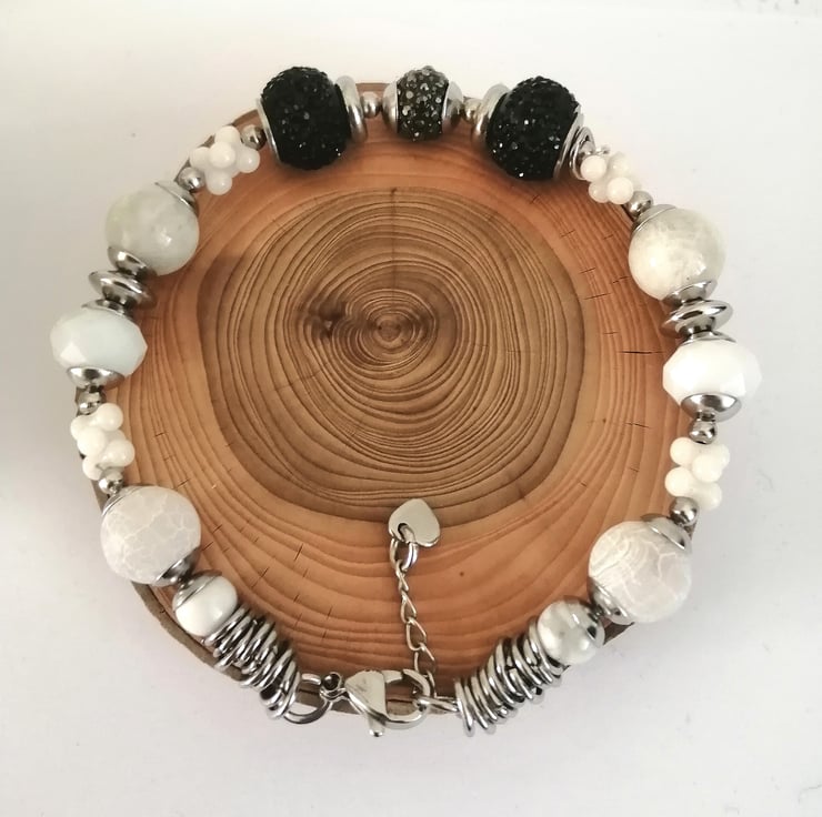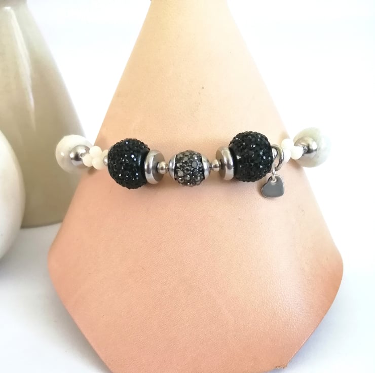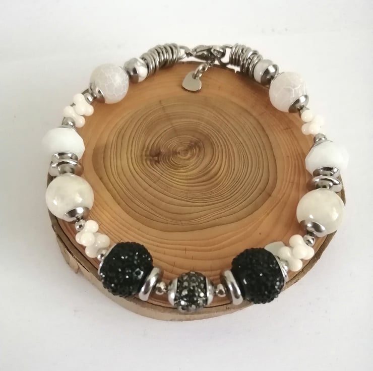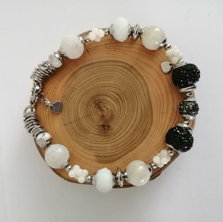 I created this go to bracelet to be warn from date to night, the go to jewellery that suits any outfit. Classic black and white design that sparkles and shines.