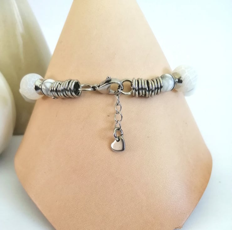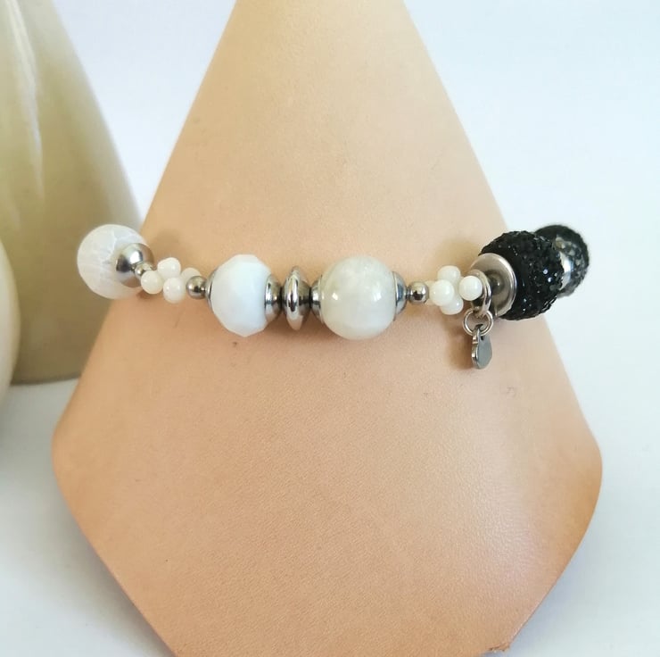Monochrome bracelet, black and white beads, moonstone, agate coral beads
