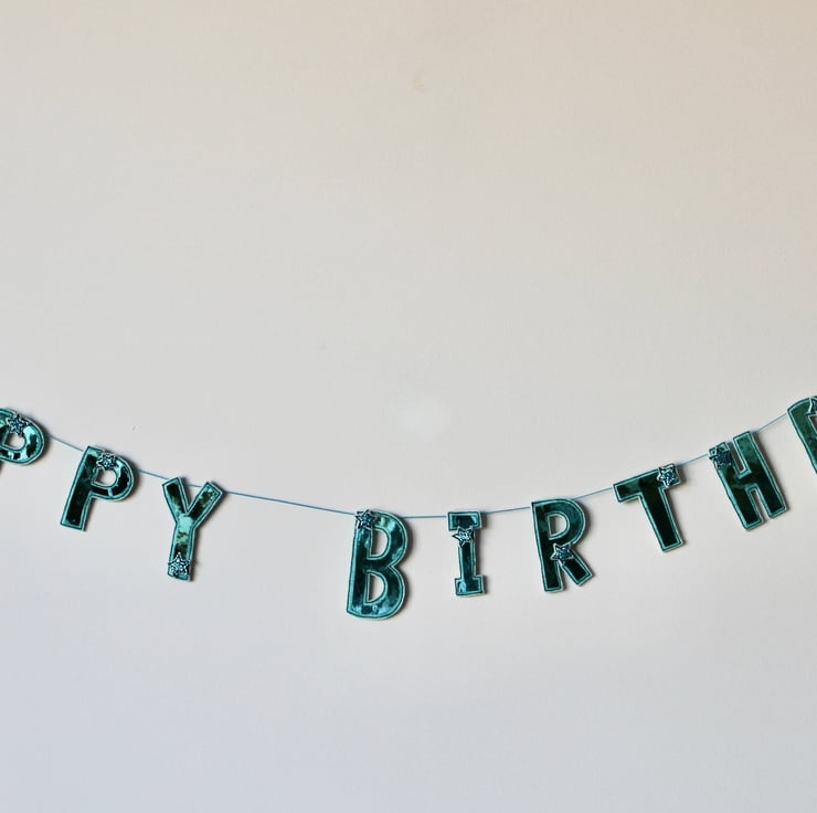 A handmade 'Happy Birthday' garland, which can be used year after year.