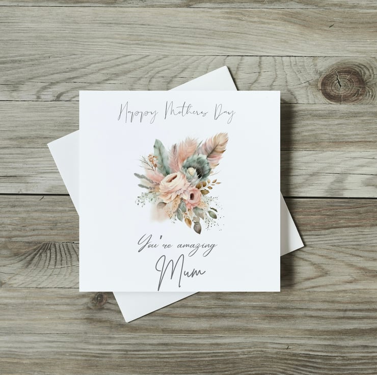 A lovely floral bouquet card for Mother’s Day in beige and cream