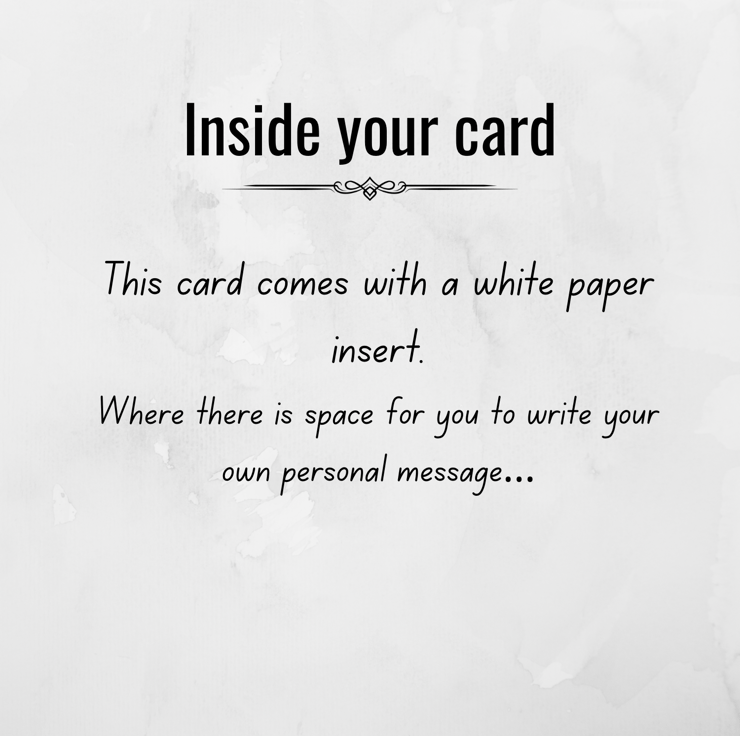This card measures 15cm square (approximately 6in) and is printed on quality off white 260gsm card using quality ink..