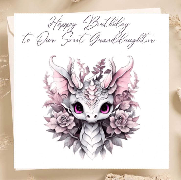 Granddaughter Birthday Card featuring a whimsical dragon!