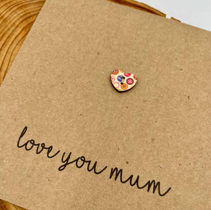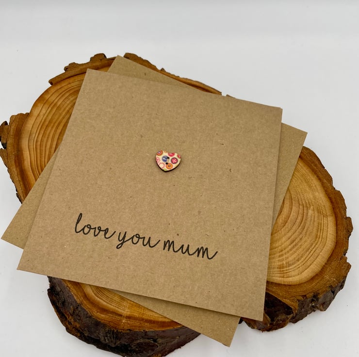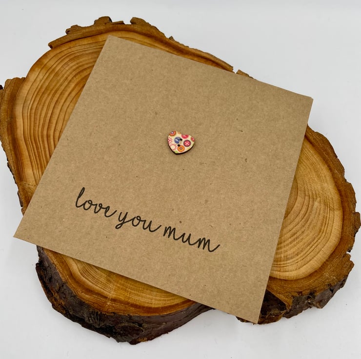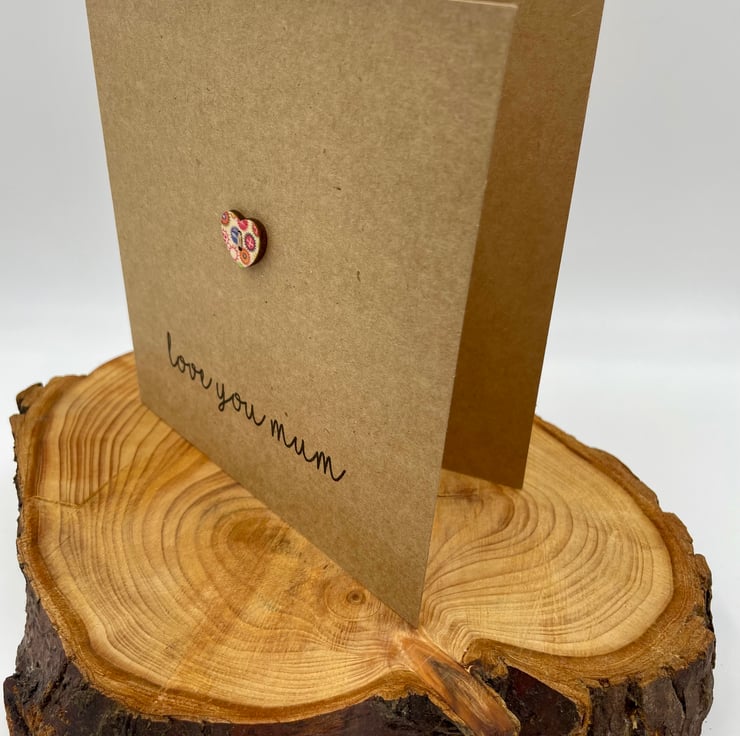 A little card with a whole lot of love for Mum. Made with care on recycled card and topped with a sweet wooden heart button, it’s a heartfelt way to say ‘Love you, Mum’—perfect for Mother’s Day, a birthday, or just because she’s truly wonderful.