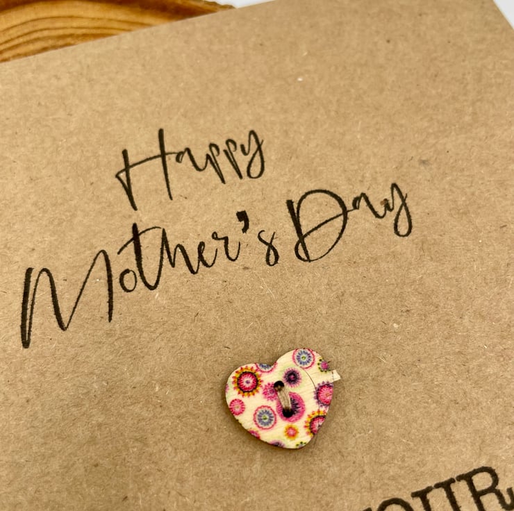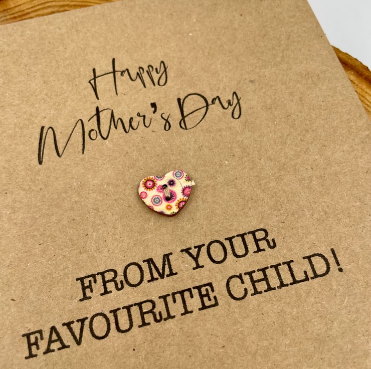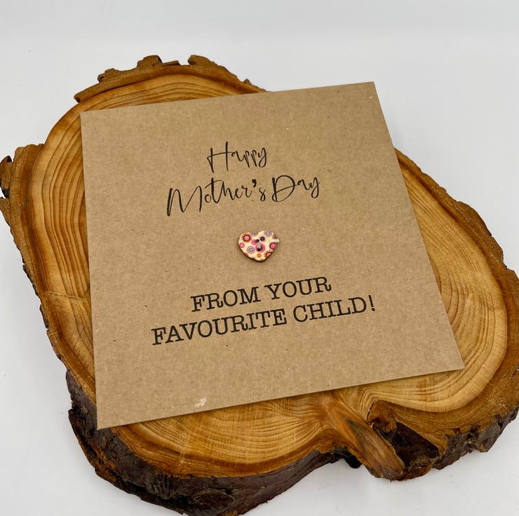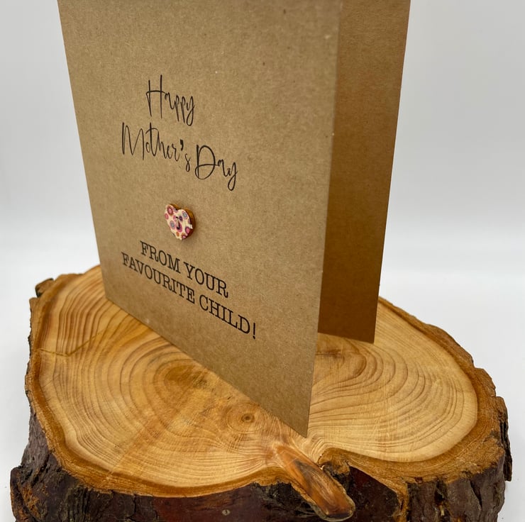 A cheeky little card full of love (and just a hint of mischief)! Made with care on recycled card and finished with a sweet wooden heart button, it’s the perfect way to wish Mum a Happy Mother’s Day—from her absolute favorite child, of course!