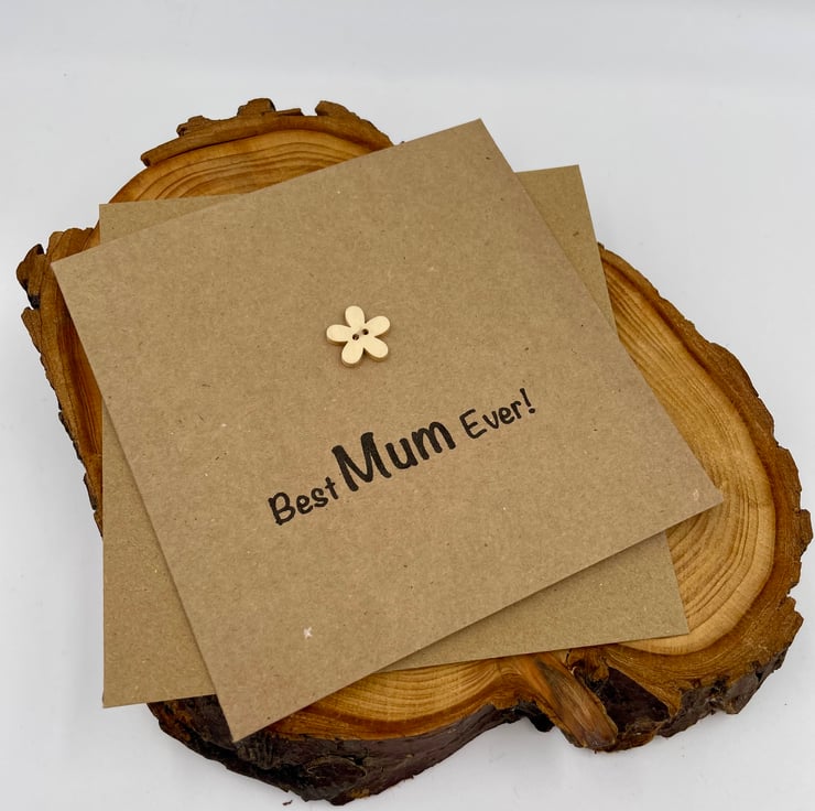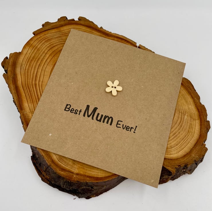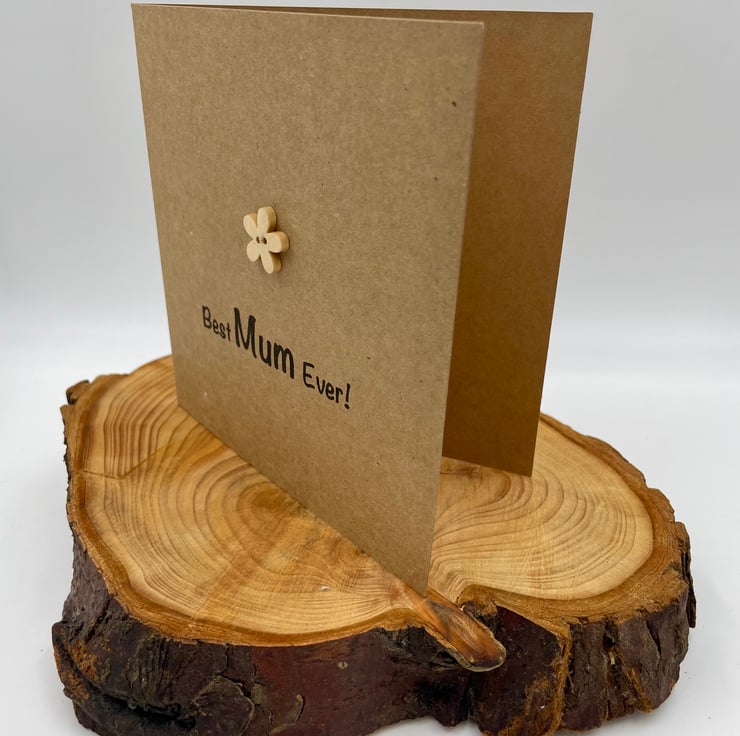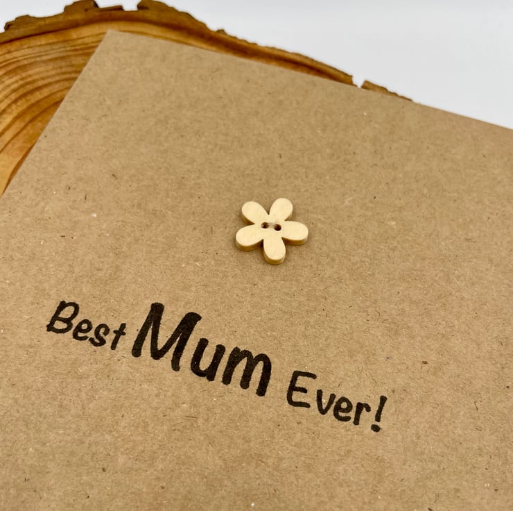 A sweet little card for the Best Mum Ever! Made with love on recycled card and finished with a charming wooden flower button, it’s a perfect way to show your appreciation—whether it’s for Mother’s Day, her birthday, or just to say thank you for being wonderful.