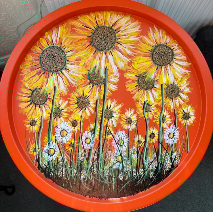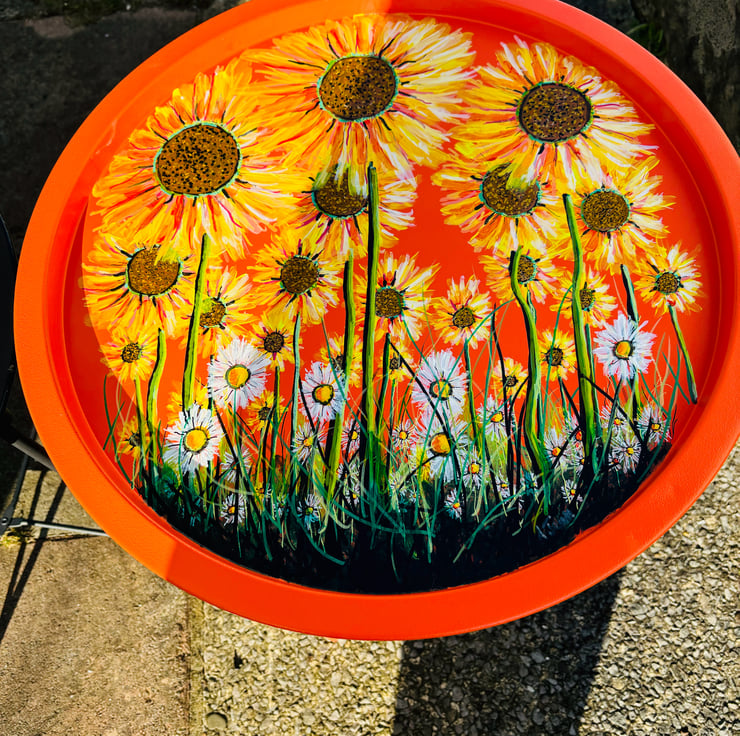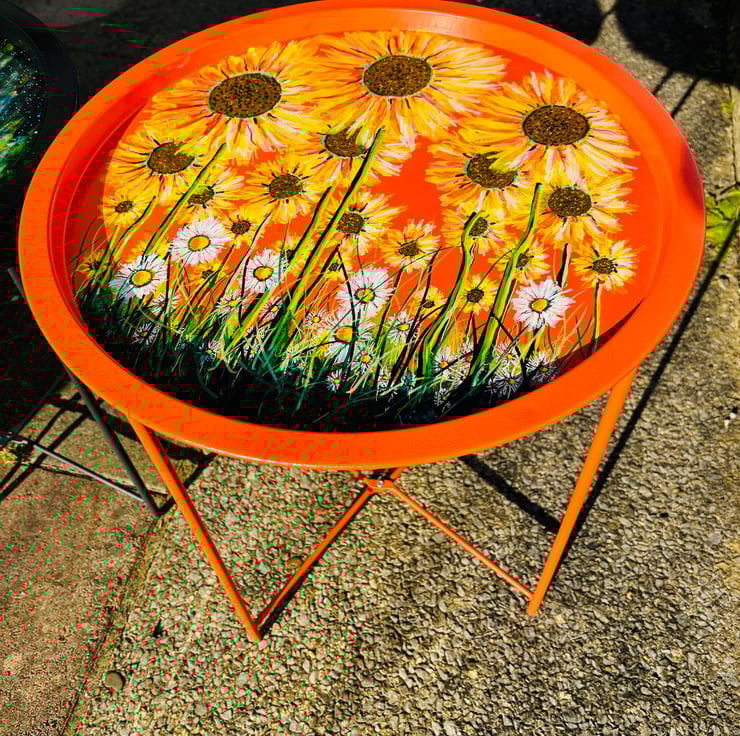 A hand painted and varnished fold away table by Andrew Jenkins