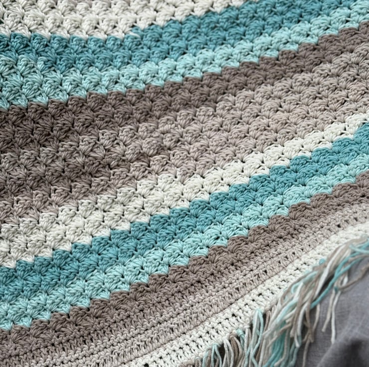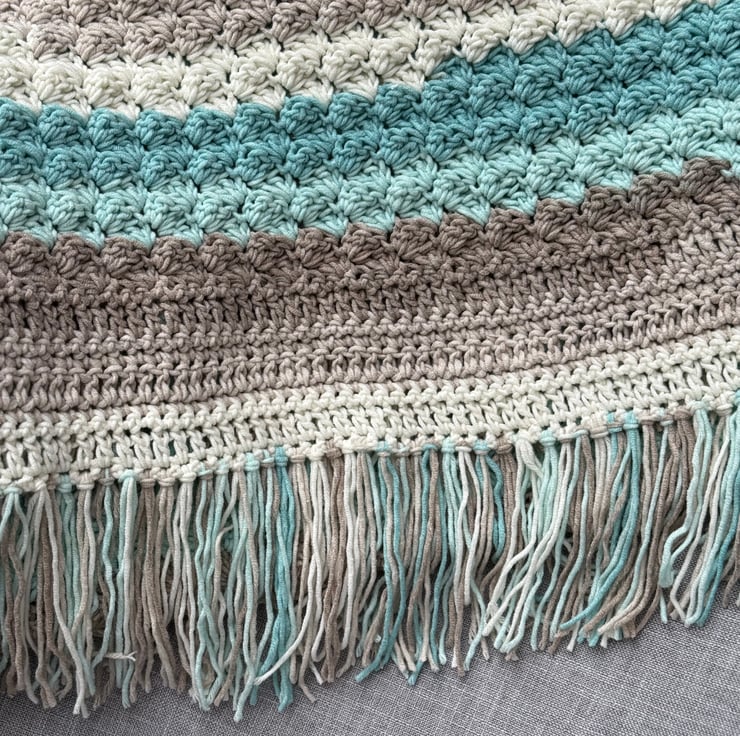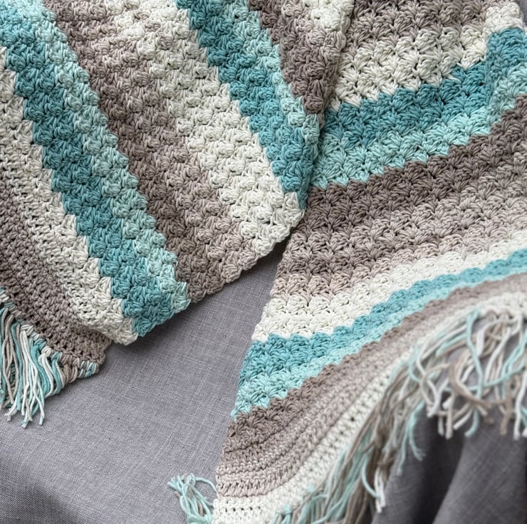 This beautifully hand crocheted throw features the elegant puff stitch in a stunning variegated yarn. It will effortlessly compliment any home decor and also serve as a handy knee blanket for chilly evenings. This throw is not only visually appealing but also practical and comfortable making it a perfect addition to any room.