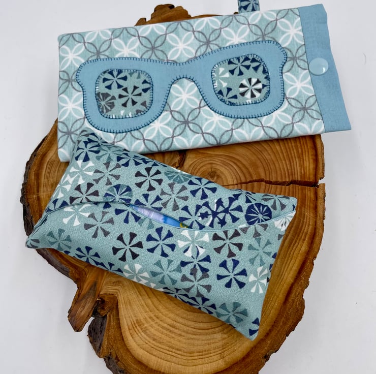 Imagine the perfect little gift for someone who loves a touch of charm and practicality! This delightful set includes a handmade glasses case, beautifully adorned with an appliqué glasses design, and a matching tissue pouch—both crafted from a lovely teal-patterned fabric that’s as pretty as a spring morning. The glasses case keeps specs safe in style, while the tissue pouch (tissues included!) ensures they’re always ready for life’s little moments. Thoughtful, sweet, and oh-so-useful, this set is a perfect pick-me-up for a friend or a treat for yourself!