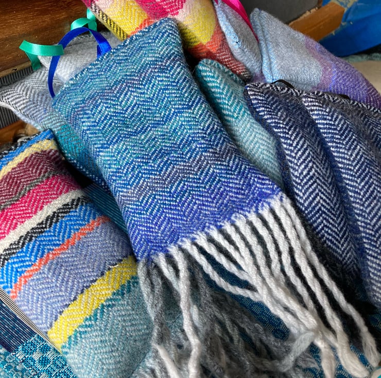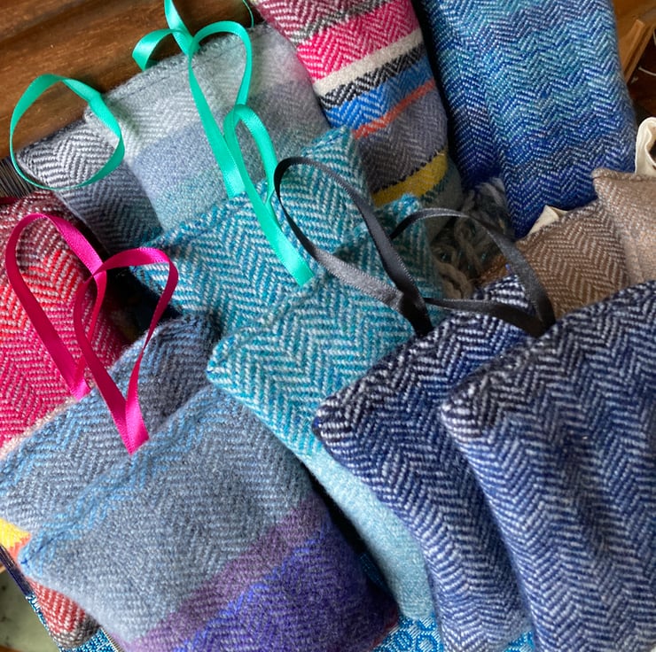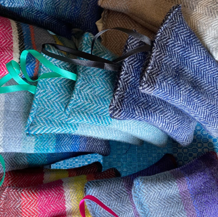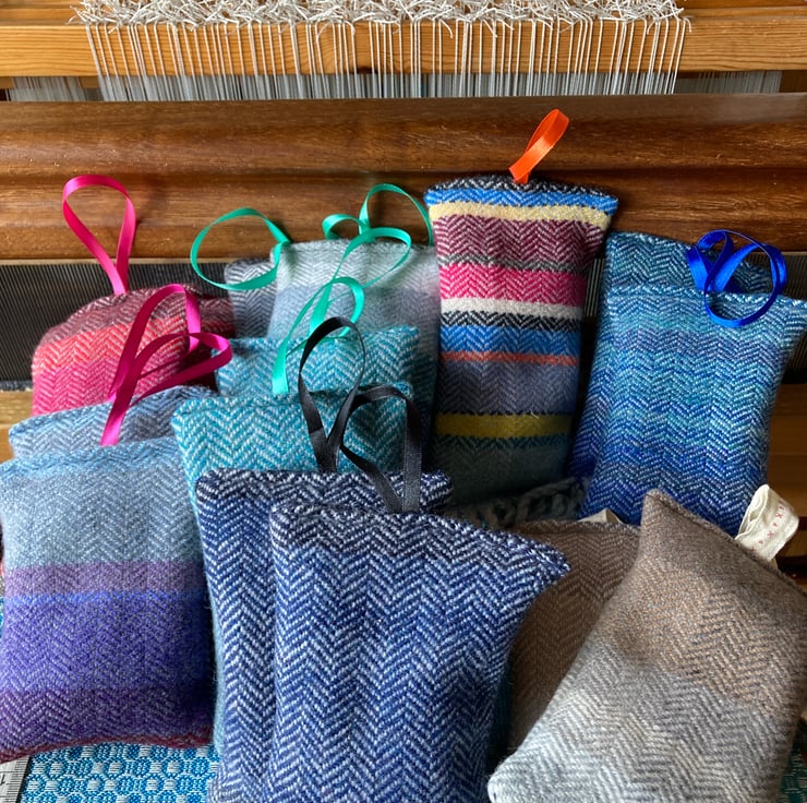 Lovely handmade lavender bags hand woven in herringbone draft, in various colours. Each is woven on a Fibonacci gradient warp.