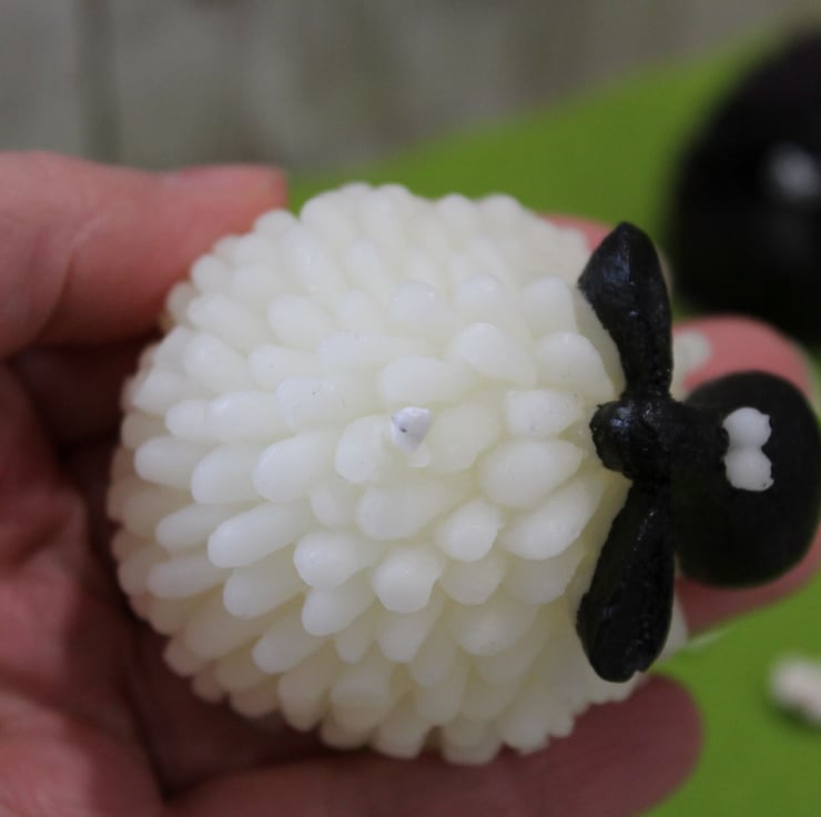 Fun, cartoon like, homemade Beeswax Sheep Candles are great for a Spring or an Easter Display, made from white beeswax, the faces are hand painted with candle paint. Choose from a White Sheep or a Black Sheep!