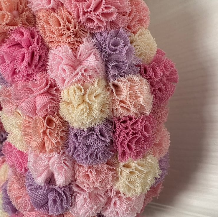 Sweet and cute this scrunchy Pom Pom wreath makes any nursery look beautiful.