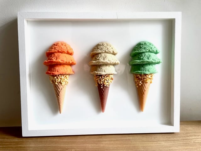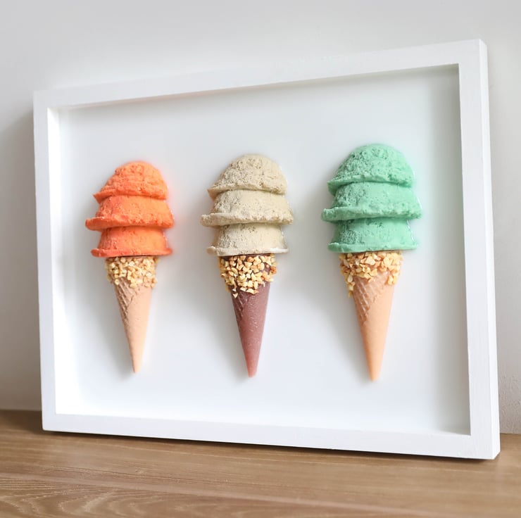 Indulge your love for whimsical decor with our stunning Ice Cream Resin Artwork!