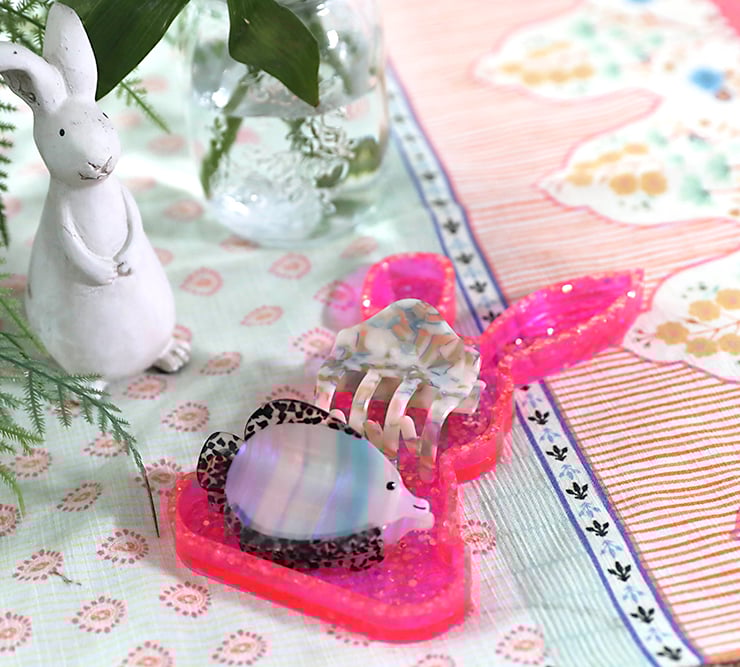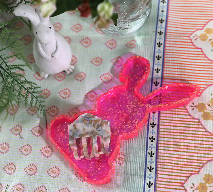 To keep your Glitter Bunny Trinket Dish looking fabulous, simply wipe it clean with a soft, damp cloth. Avoid harsh chemicals that could dull the shine or damage the resin. Each piece is handcrafted with care, ensuring high quality and authenticity. Celebrate the season with this charming bunny dish, perfect for gifting or treating yourself to a delightful piece of decor that sparks joy and creativity in your home!