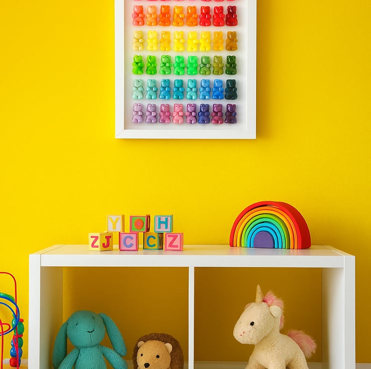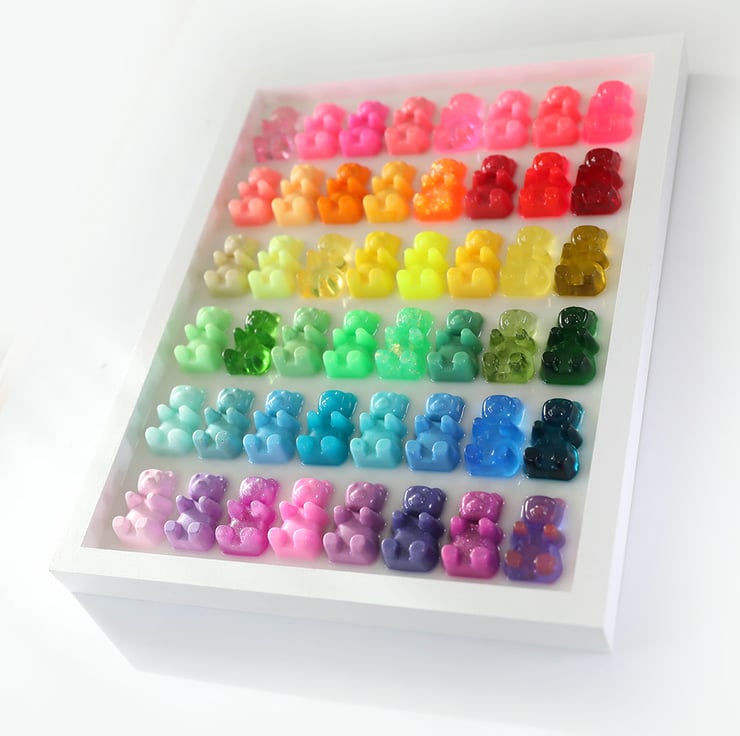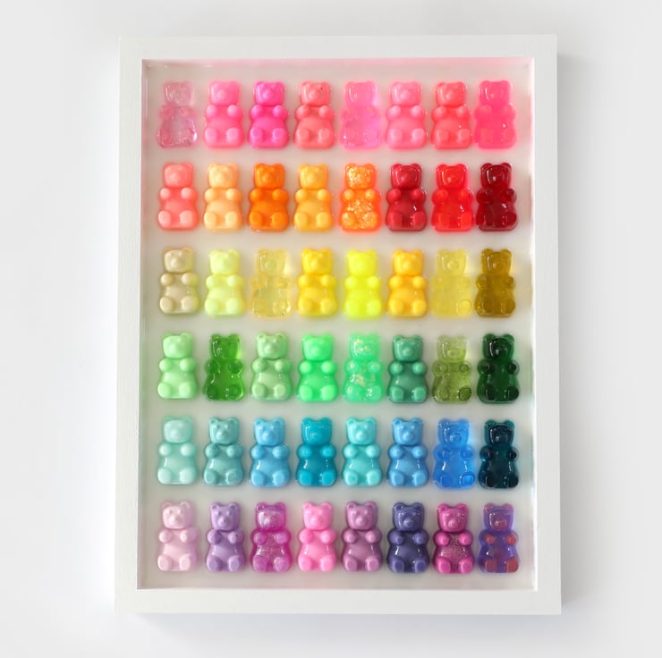Colourful Multi Gummy Bear Resin Wall Art, Handmade Vibrant Artwork for Playful