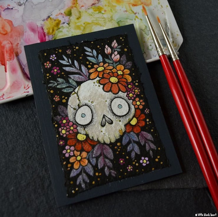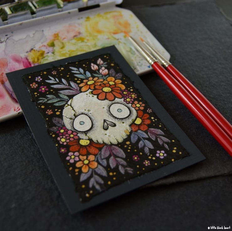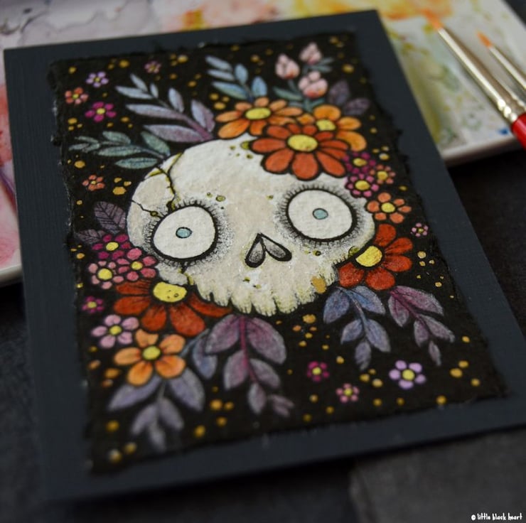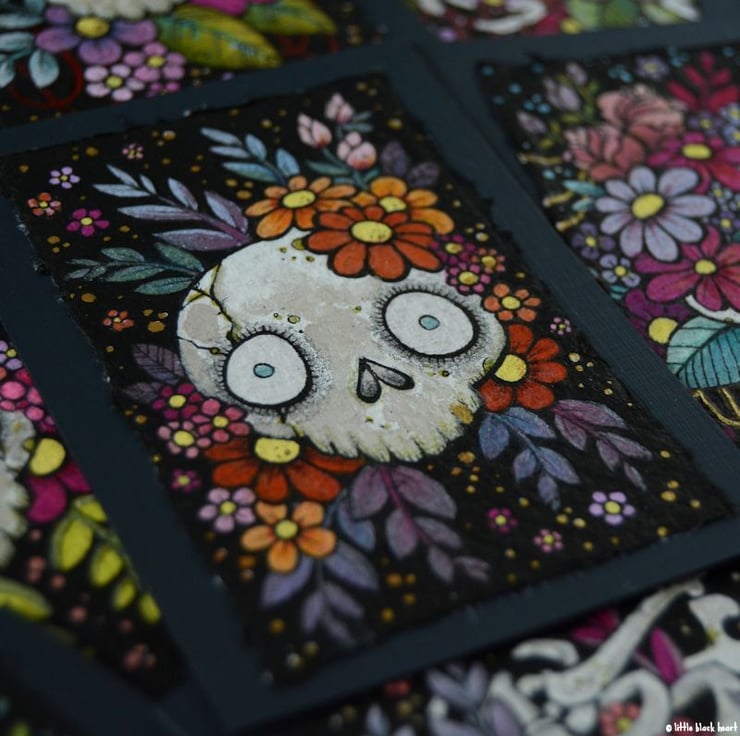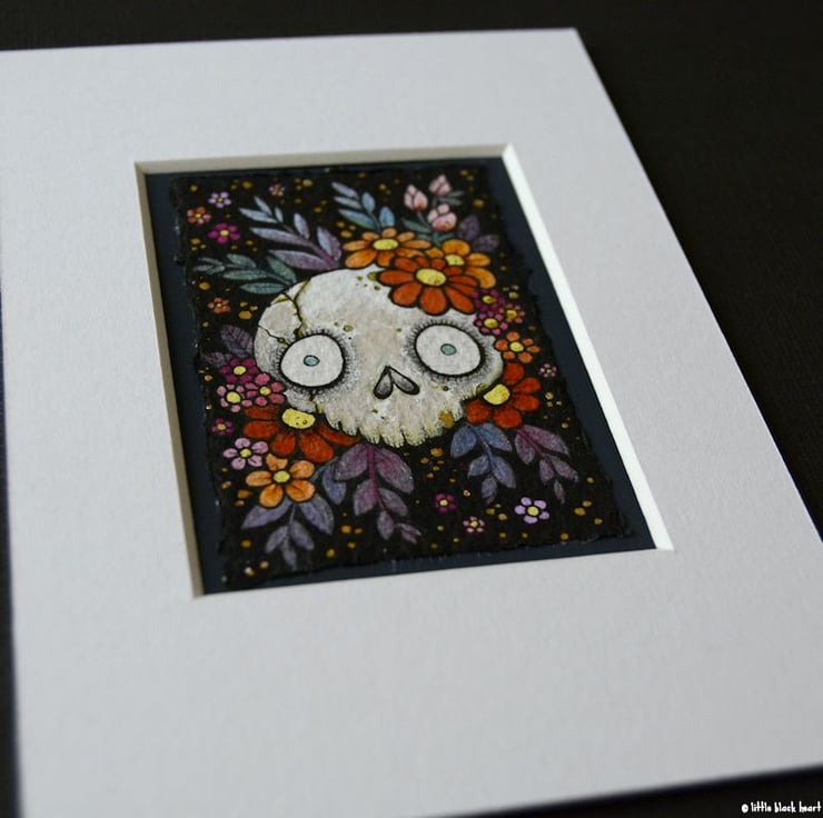 bony botanical skull - original aceo