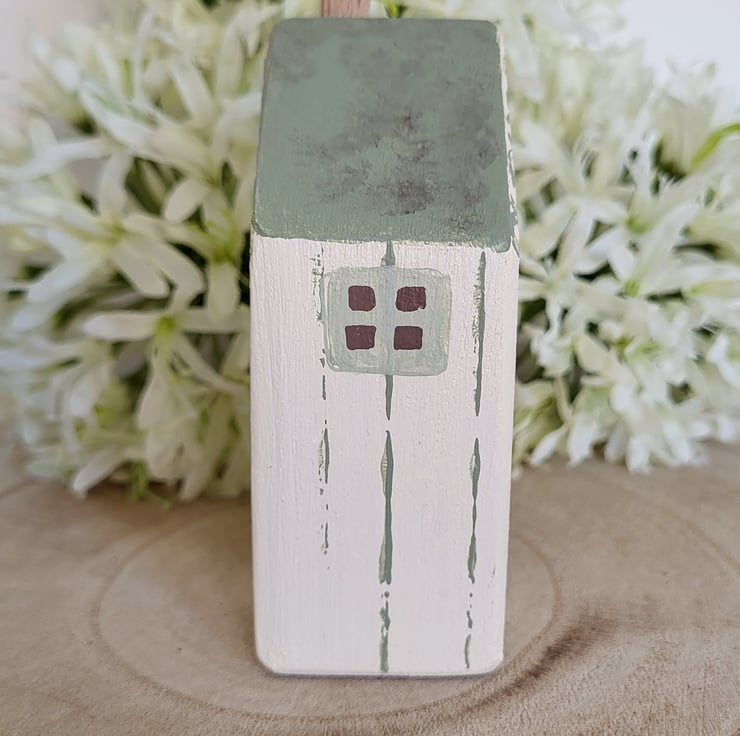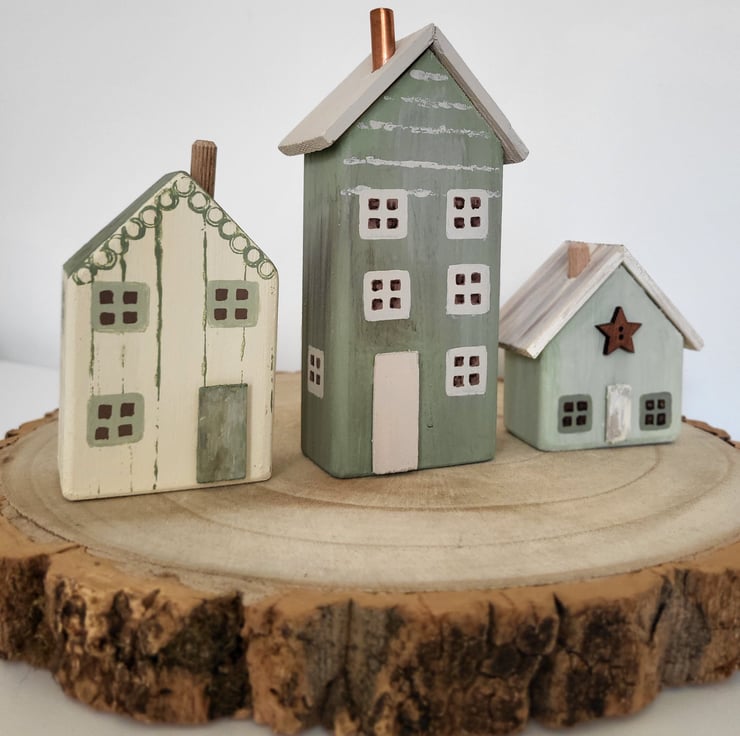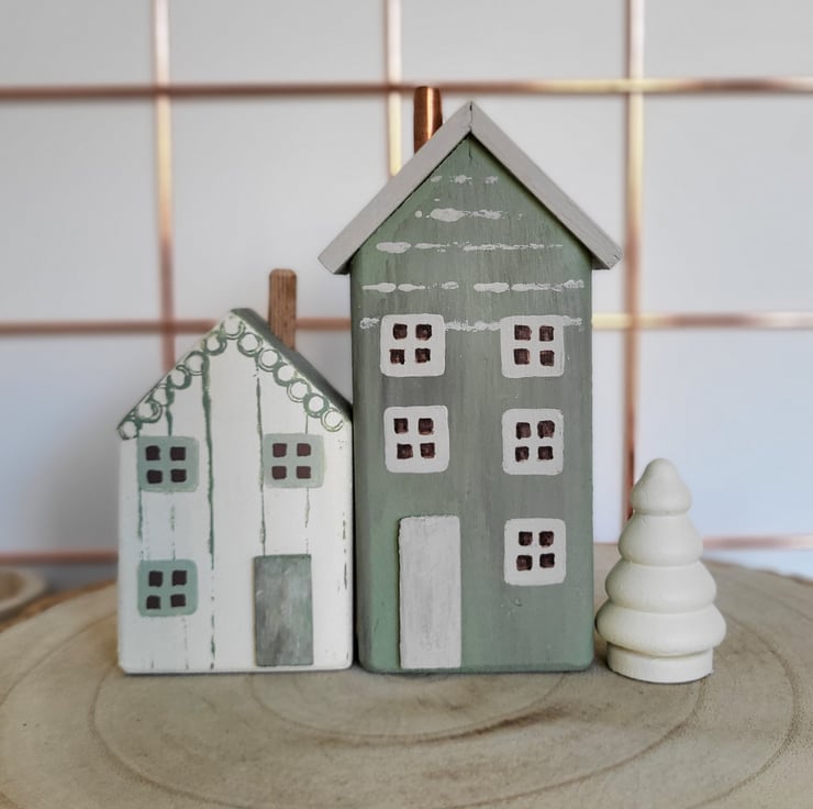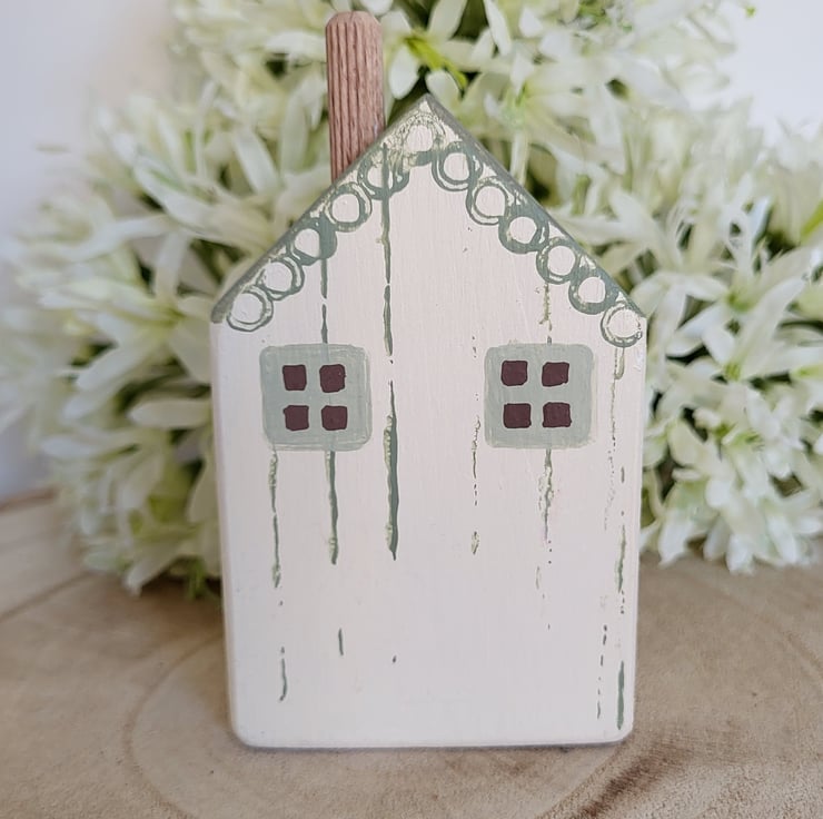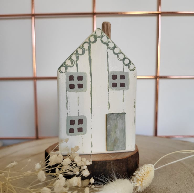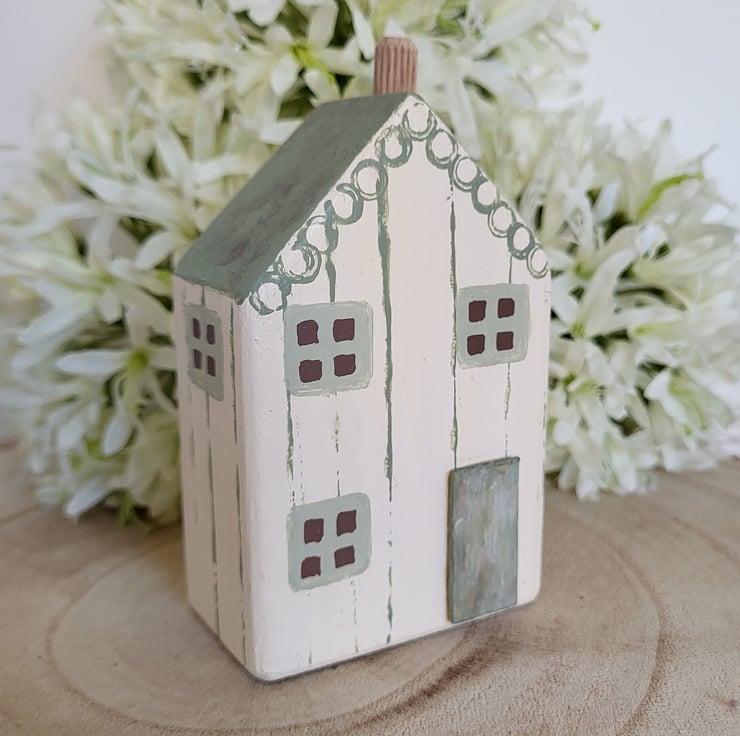 Each little house is measured, cut and sanded by hand, before then being hand painted and hand decorated, and then sealed. The house sits lovely as an individual decoration or can sit alongside another from the collection as part of a set.