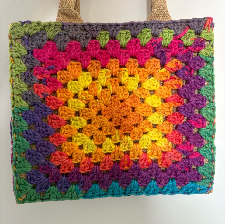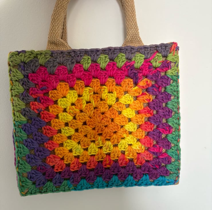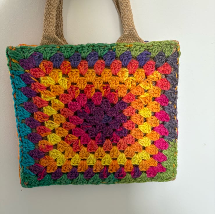Gorgeous mini hand crochet jute tote bag.