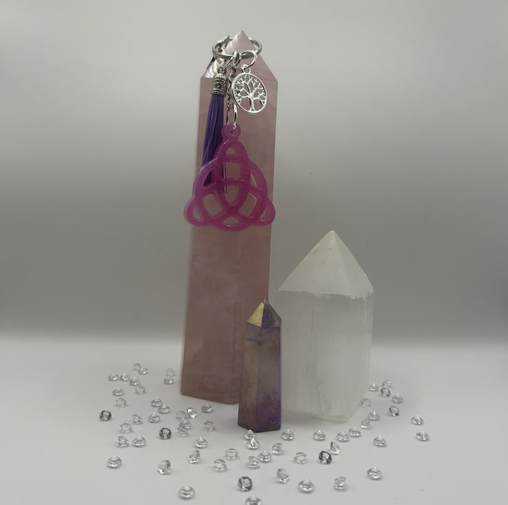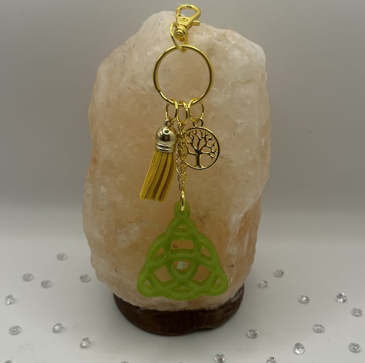 A meaningful Celtic inspired gift for St Patrick’s Day or a thoughtful keepsake. This resin Triquetra bag charm/keyring features one of the oldest Celtic knot symbols, representing eternity, unity and the power of three.