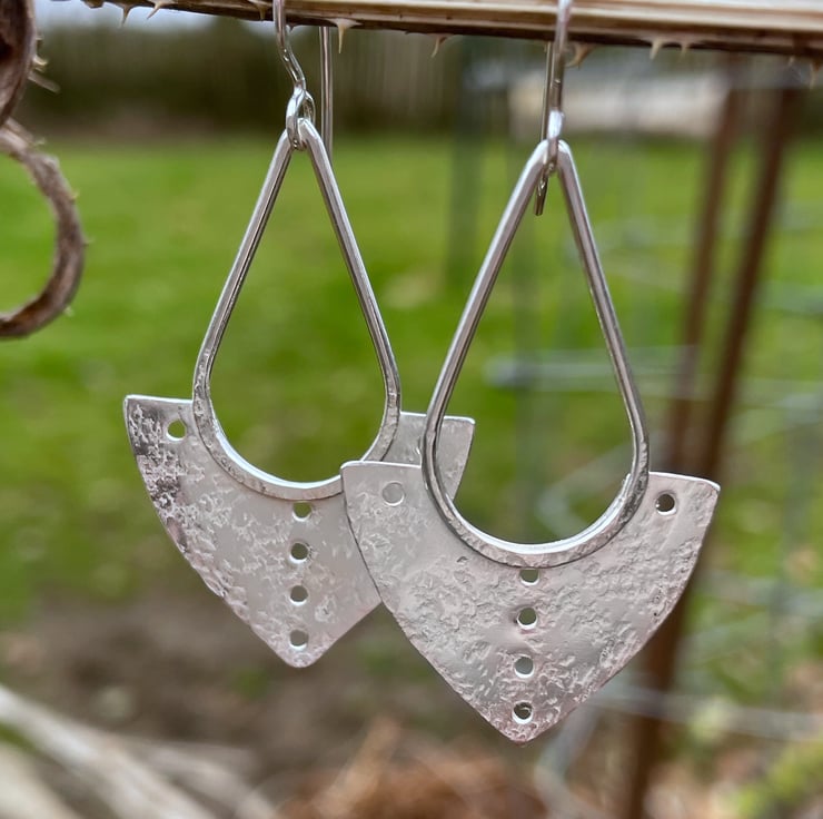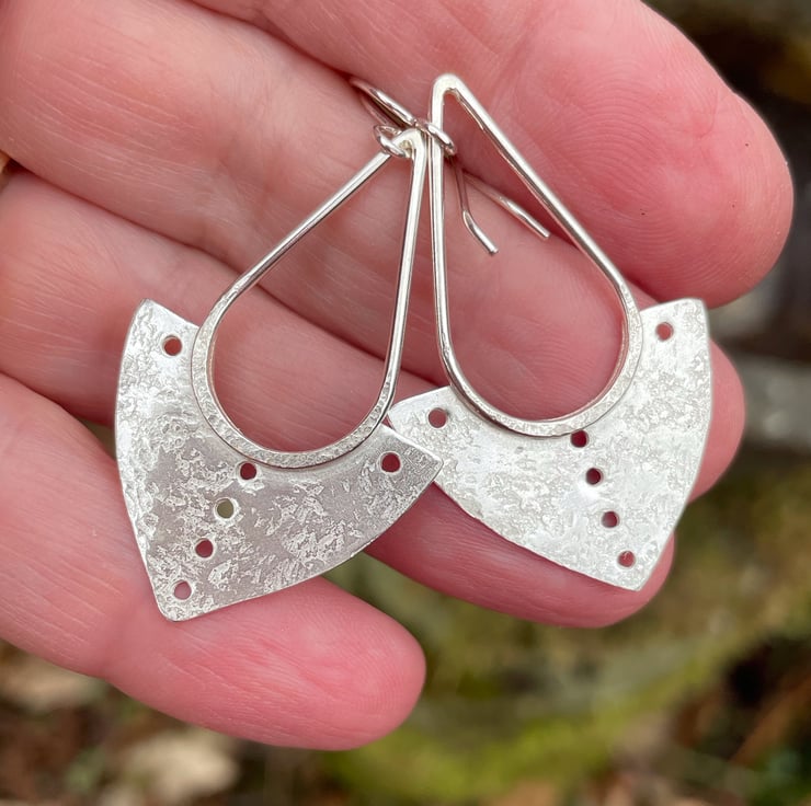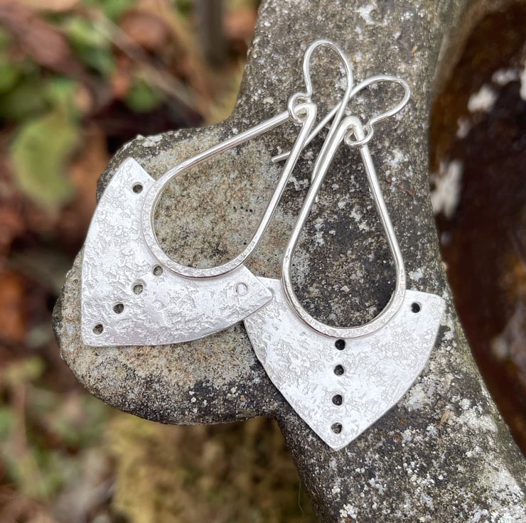 The recycled silver has an organic, weathered texture, this pair have a bright finish.
