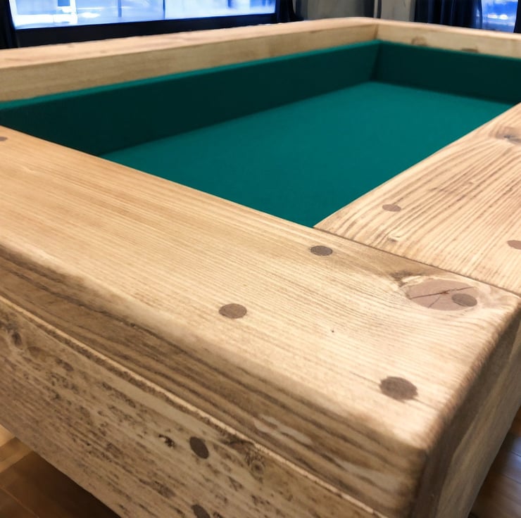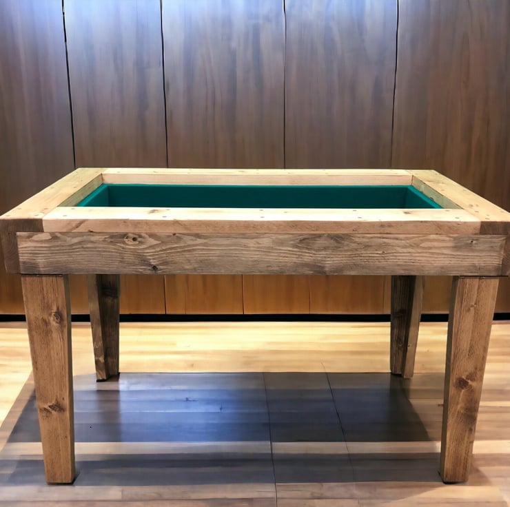 This Custom Gaming Coffee Table is a sleek and solid 2-in-1 gamingcoffee table. Comes with a removable lid to easily convert from a coffee table to a gaming table. Removing the top reveals a hidden, baize lined area perfect for board games, role-playing games or card games.