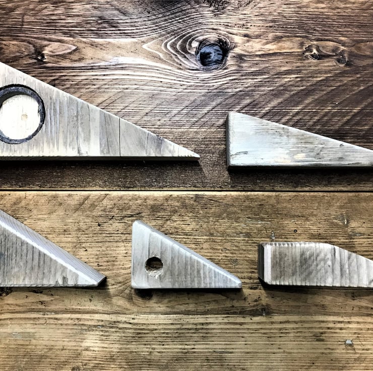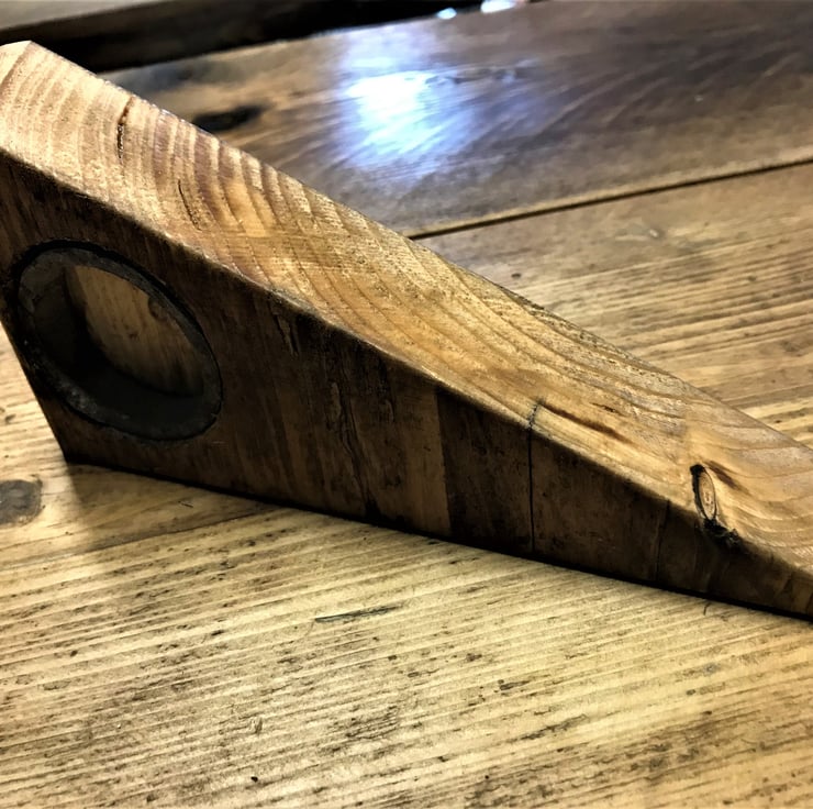 These doorstops are made from reclaimed scaffold boards and scaffold tube off cuts.