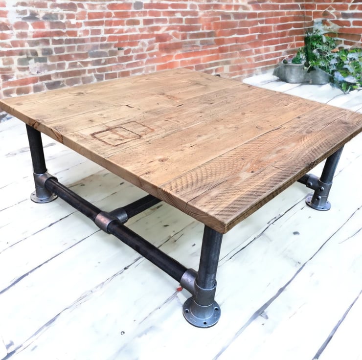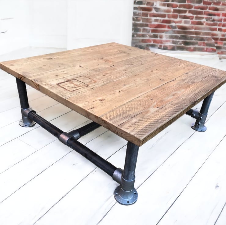 Square Rustic Coffee Table Industrial Pipe Legs Sustainably Sourced THE HOLLYBRO
