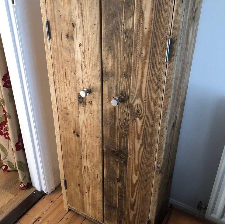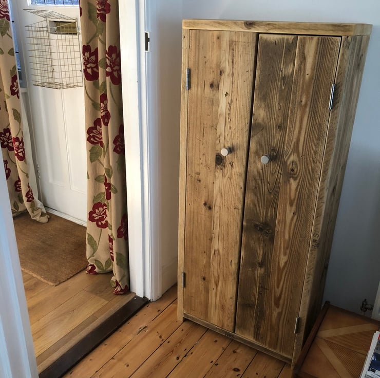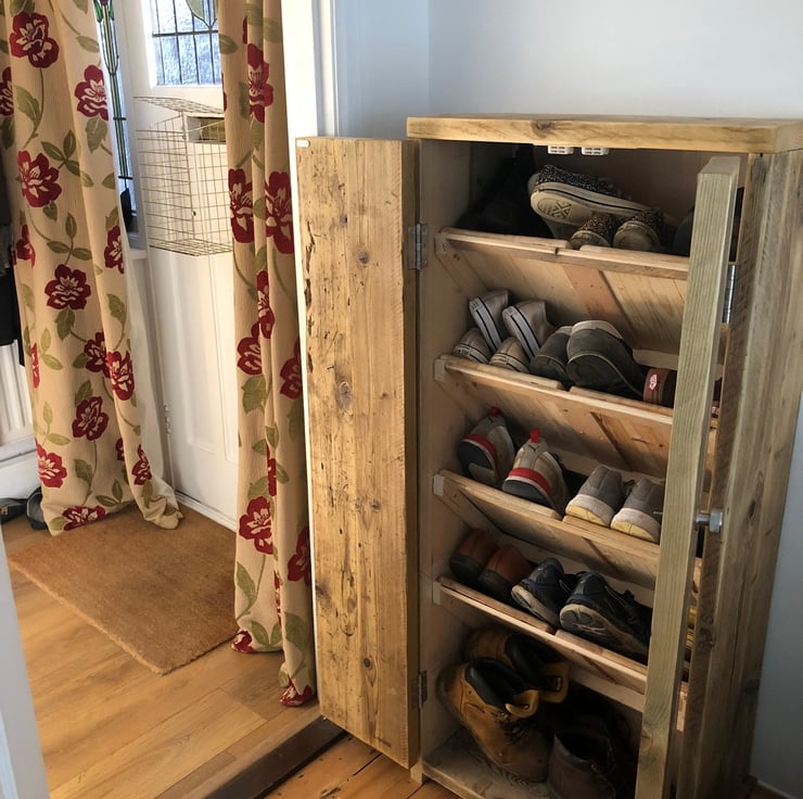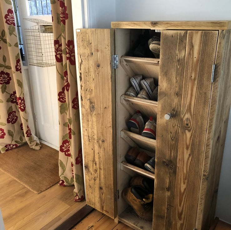 De-clutter your hallway with a tall shoe cupboard made from reclaimed scaffold boards.