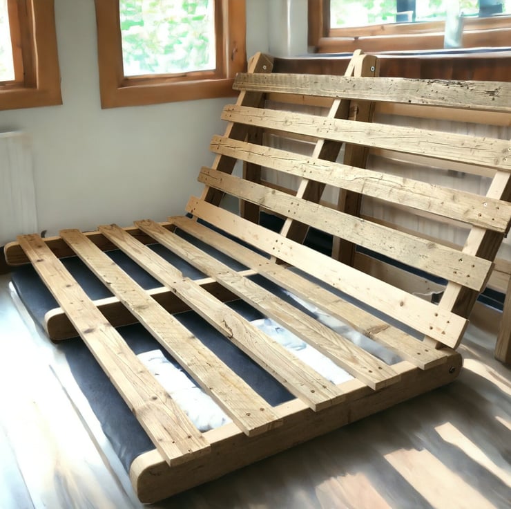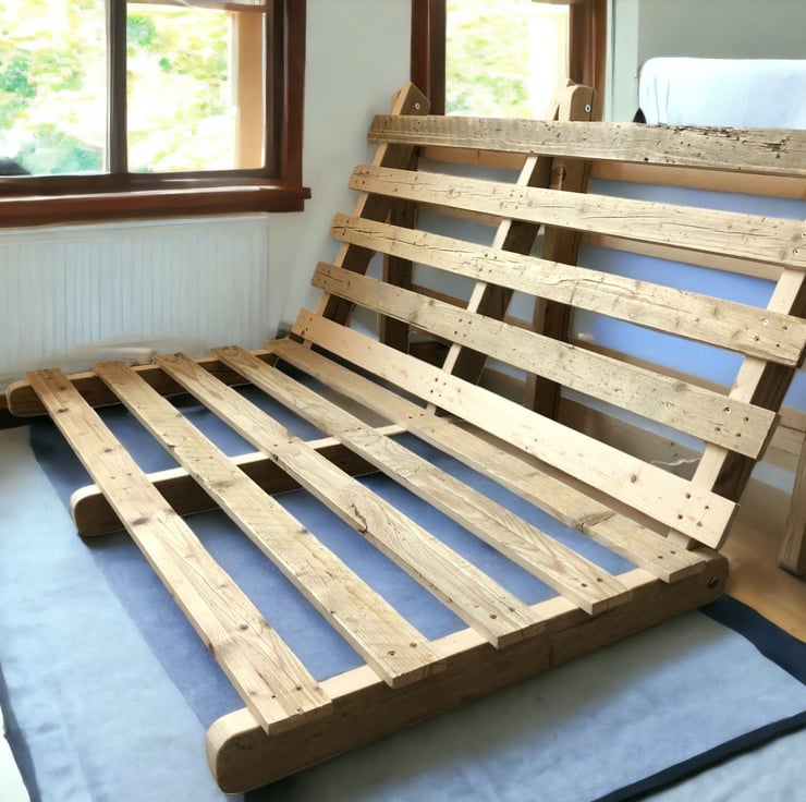 Using reclaimed scaffold boards, this futon is a functional and essential piece of furniture for any spare room.