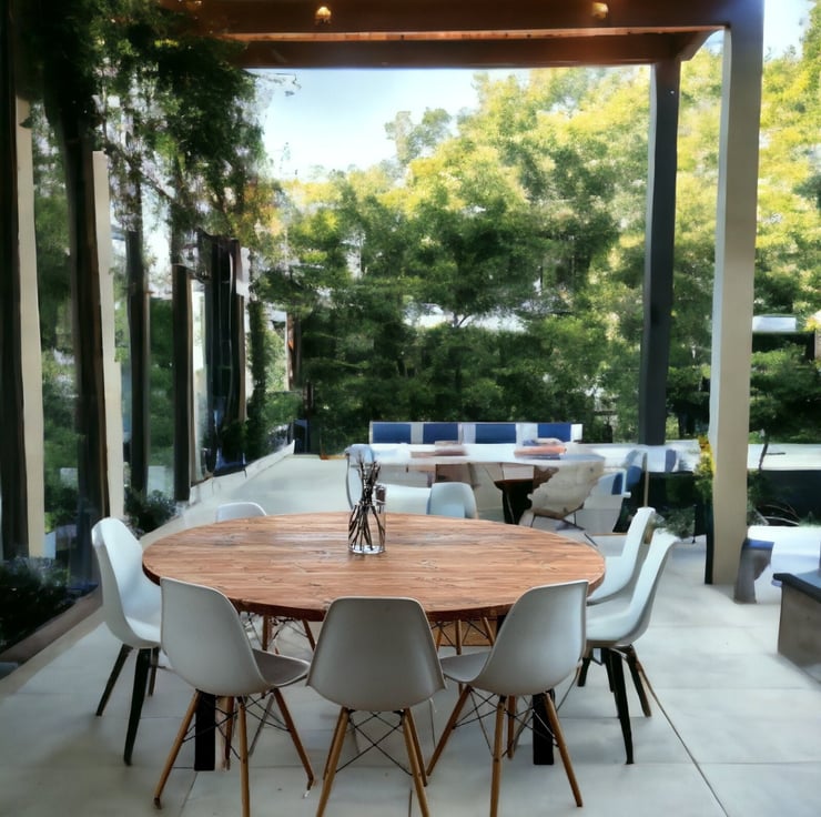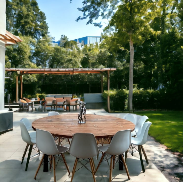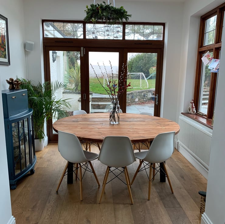 Outdoor Circular Round Table, Custom Made Reclaimed Wood Garden Use A frame legs