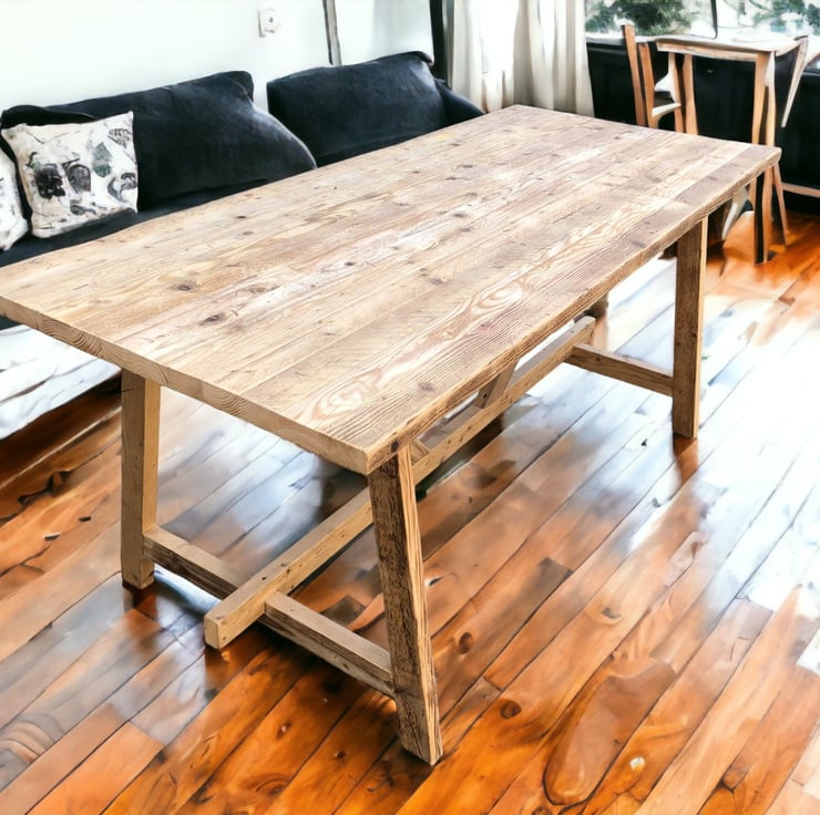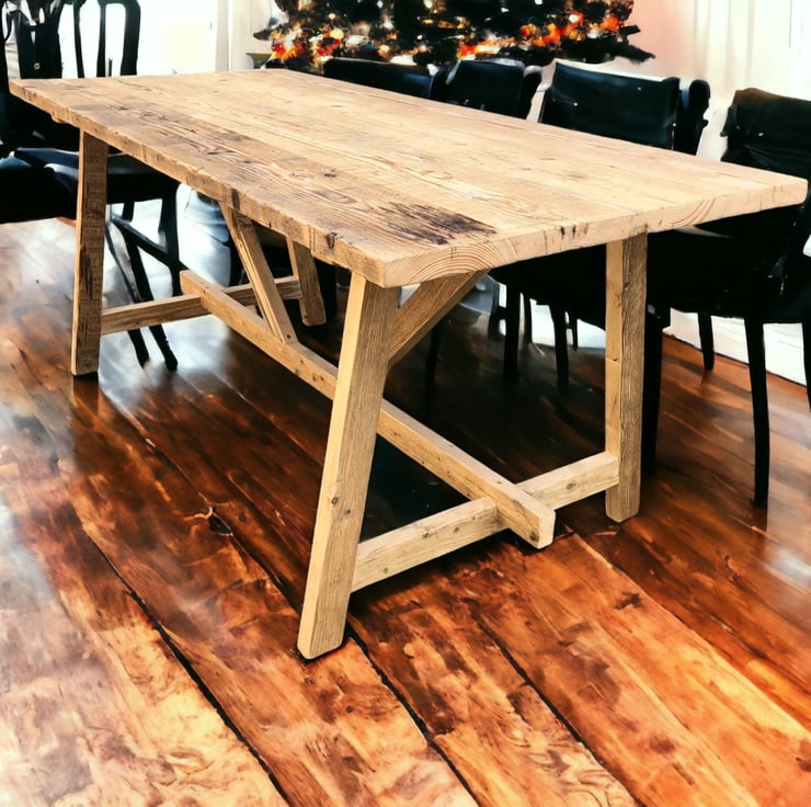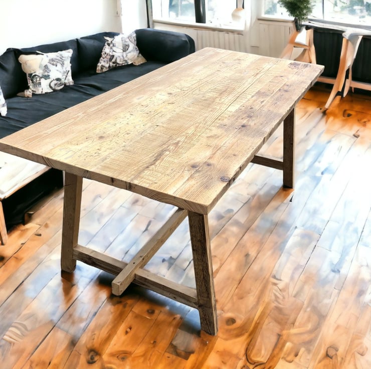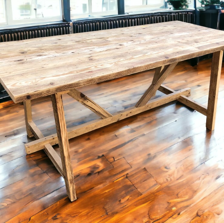 This Scandi Style Dining Table is hand-crafted using reclaimed scaffold boards, giving them a new lease of life.